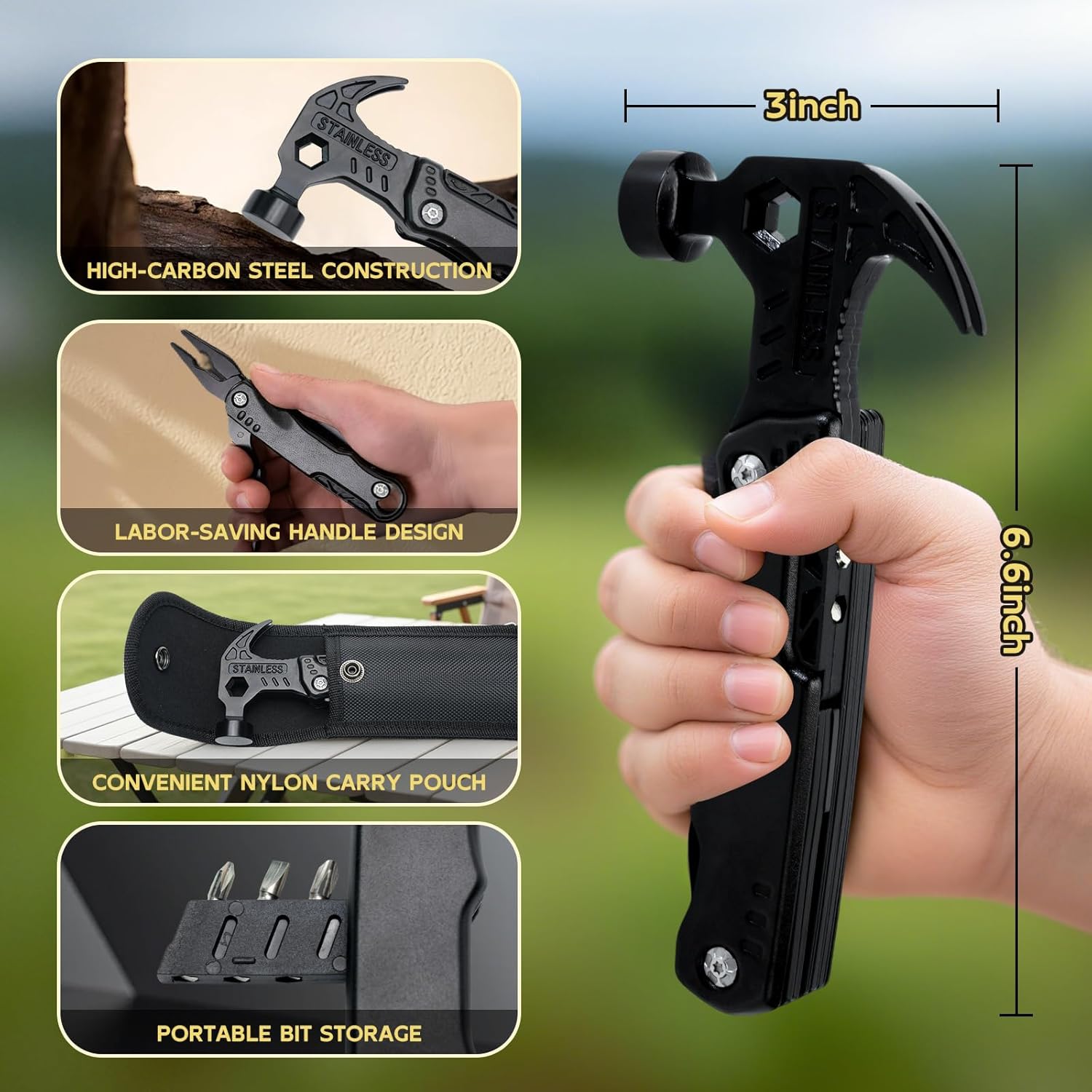 Exceptional Dad Gift For Outdoor Lovers: Stop searching! 15-in-1 Multi-Tool Hammer is the remarkable gift for dads who camp, hike, or fish. Perfect for Father’s Day, birthdays, or Christmas – give him a practical tool he’ll actually use.