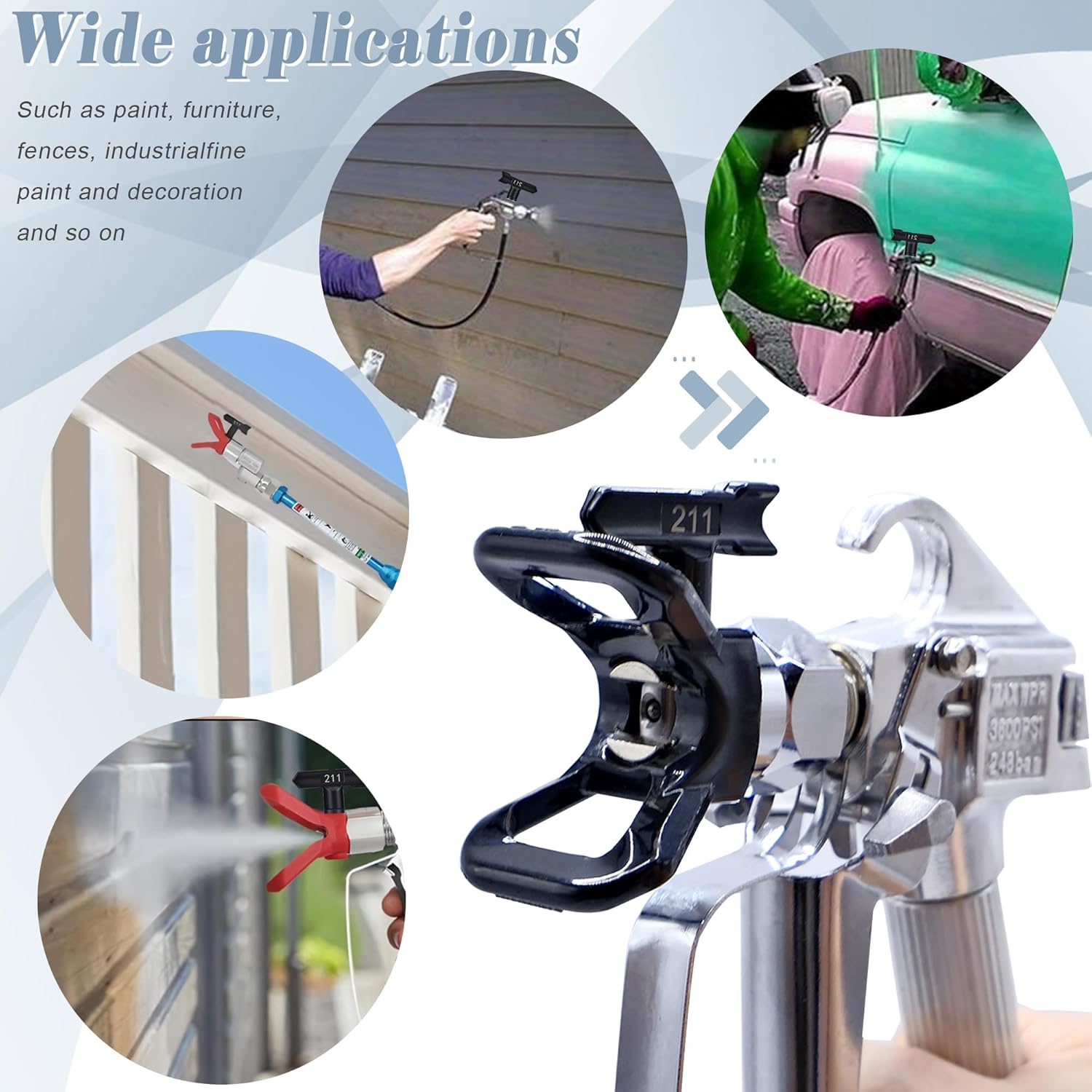 Spray uniform fine: different models (109,21,315,417,517,623) spray range will vary due to the size of the aperture, nozzle adopts reverse airless cleaning switch nozzle design, can be quickly cleaned in a reversible position, prevent nozzle blockage, not easy to plug, spray uniform, reduce material loss, save costs.