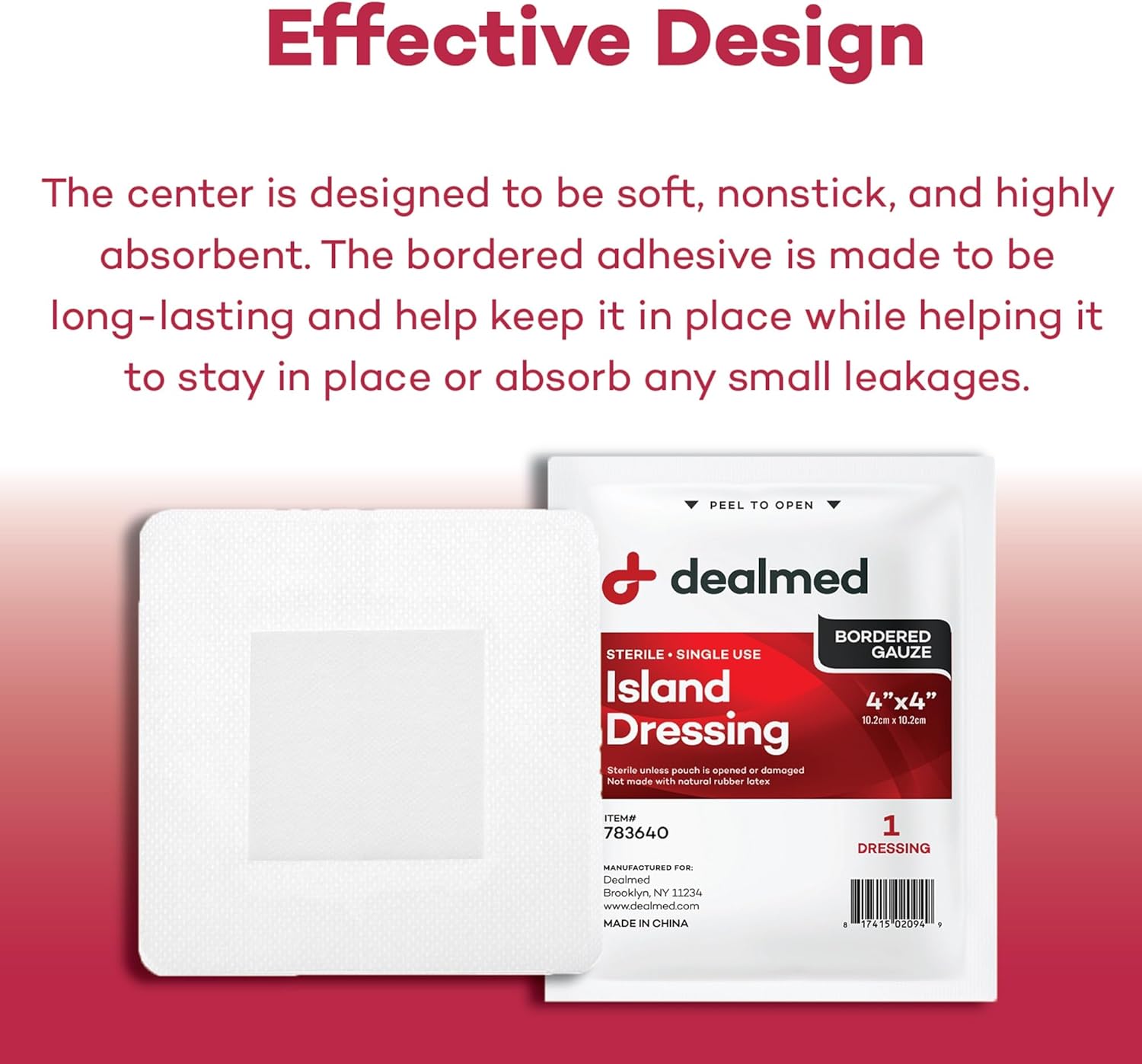 Sterile Dressings: The Dealmed Island Dressings make wound care completely hassle free and easy to do, much more so than regular gauze and tape. The adhesive borders help it to stay in place, absorb leakages, and protect the affected area.