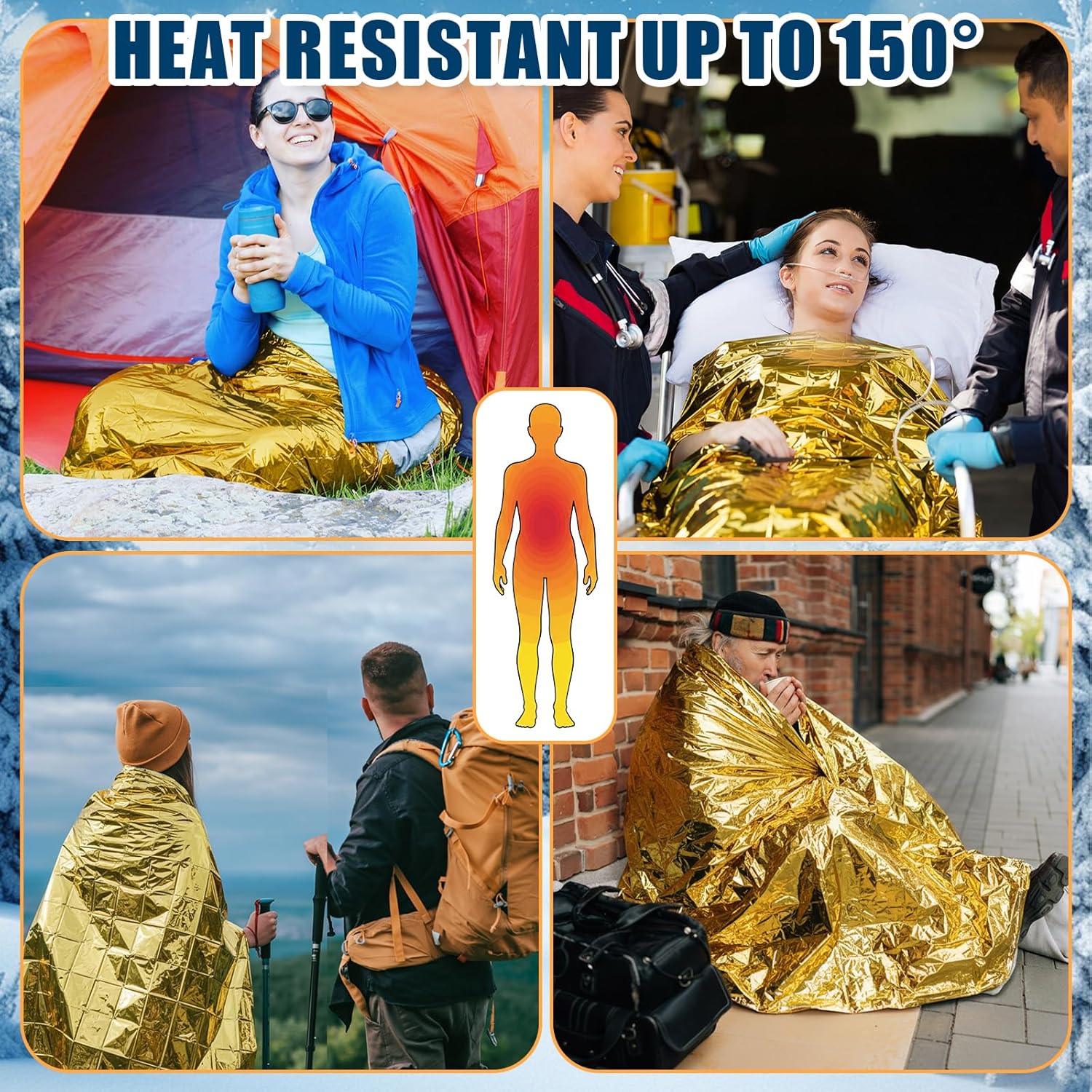 Emergency Thermal Blankets: each gold thermal blanket measures 130x210cm and folds easily into a compact size; Suitable for emergency use, hiking, camping, car kits, or cold weather survival situations; Lightweight and portable