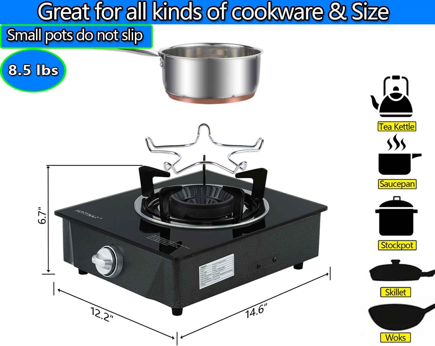 ⚡Explosion-proof Glass: Portable gas stove tempered glass is very hard after 2 times up to 1472°F, Very easy to clean.Gas stove glass is made of 4 layers of material,It has good anti-explosion performance. You can use it with confidence.(Free replacement for broken glass)