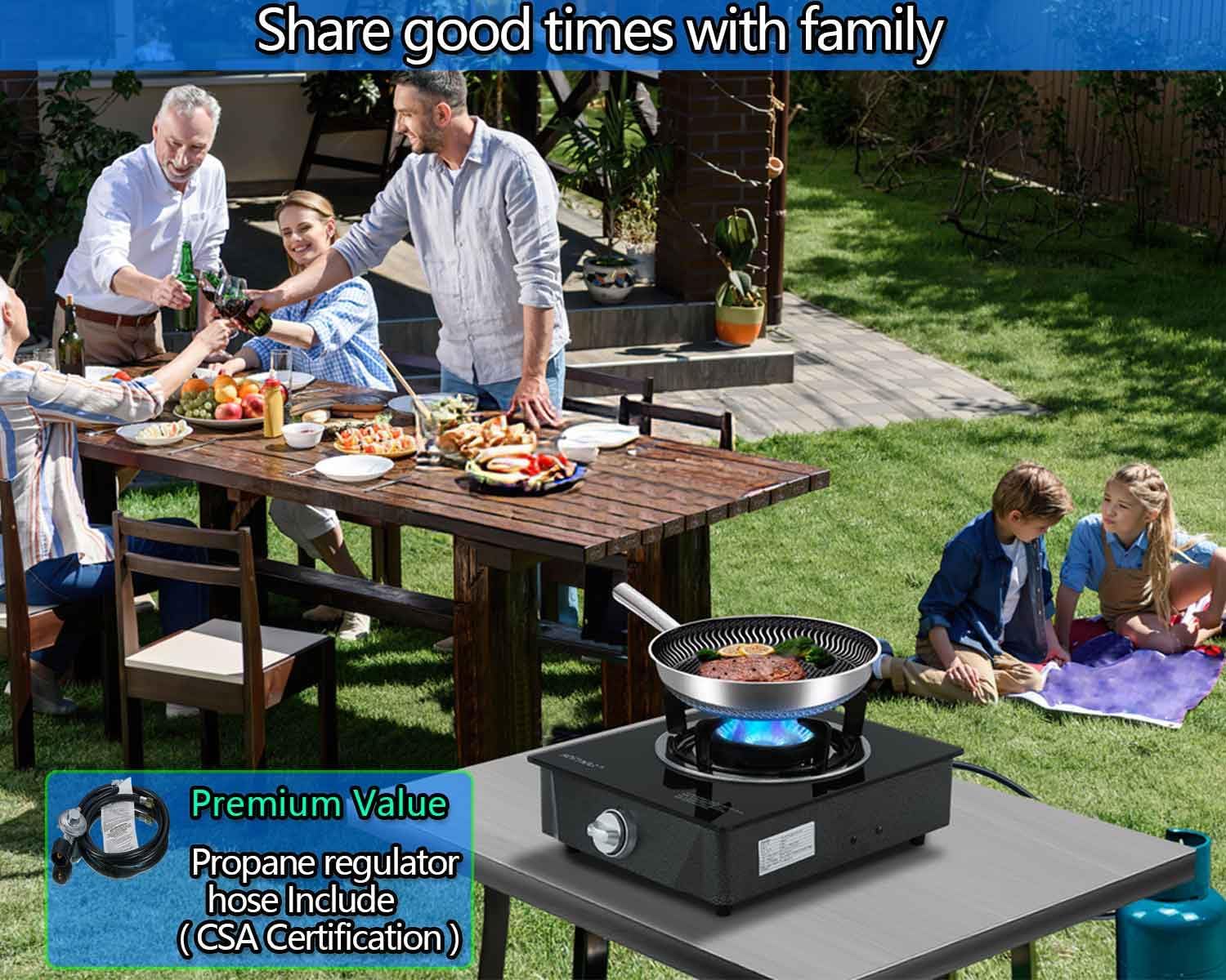 ⚡High Heat & Low Gas Consumption: The propane burner up to 15,000 BTU, 360° oxygen intake.Pure blue rotating flame technology with 30% improved wind resistance, gas consumption reduced by 20%. Boil 1 pint of water in 3 minutes, Make cooking very efficient