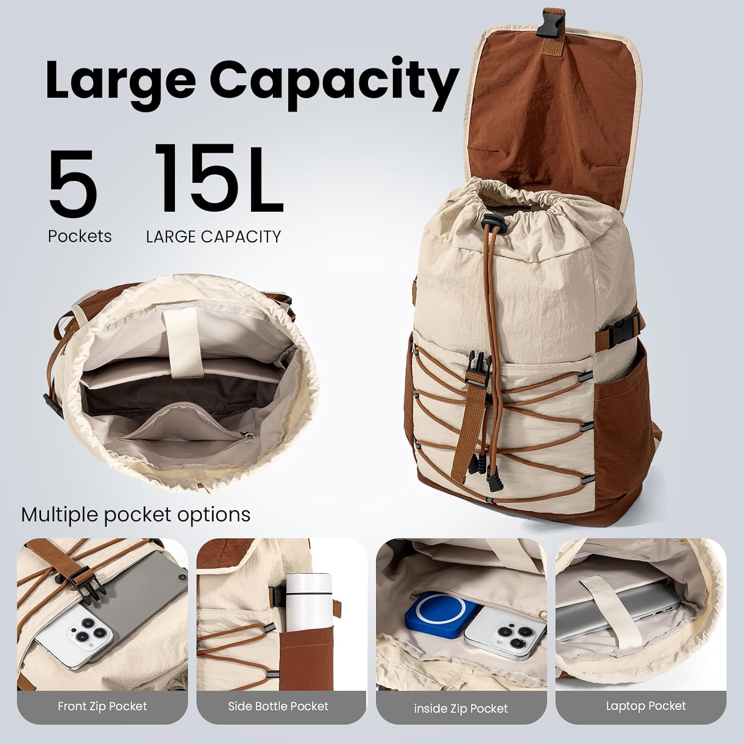 Large Capacity & Versatile Use: Boasting a 15L capacity, this backpack is a perfect travel backpack for women and men, ideal as a laptop backpack to securely hold your device, a casual daypack for school or commuting, and even a reliable hiking backpack for outdoor adventures. Multiple pockets, including front, side, and internal compartments, keep essentials organized whether you’re traveling, working, or hiking.
