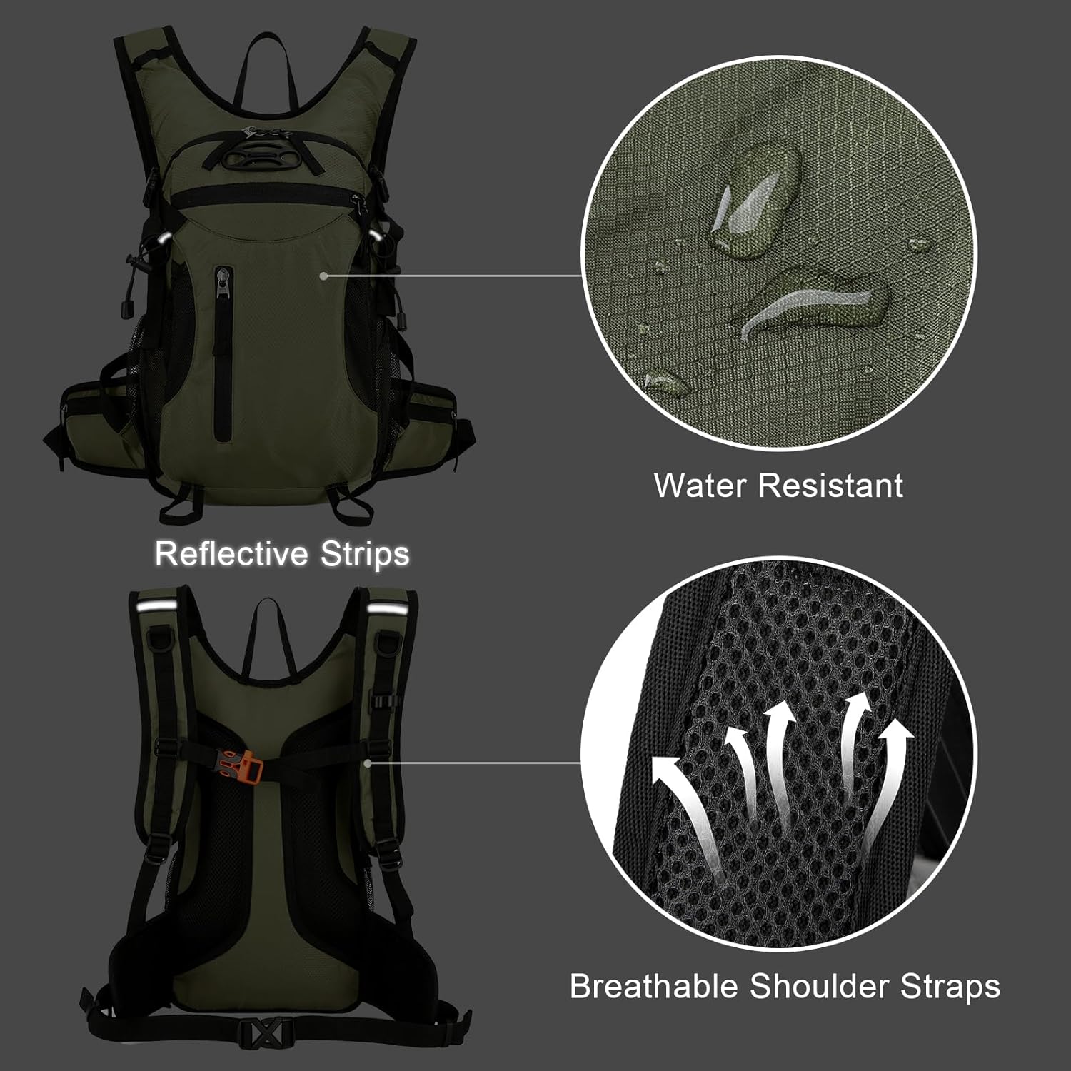 Durable & Waterproof: Made of water resistant and ripstop oxford cloth fabric that effectively prevent branches, stones from scratching the pack and ensures durability in damp conditions.