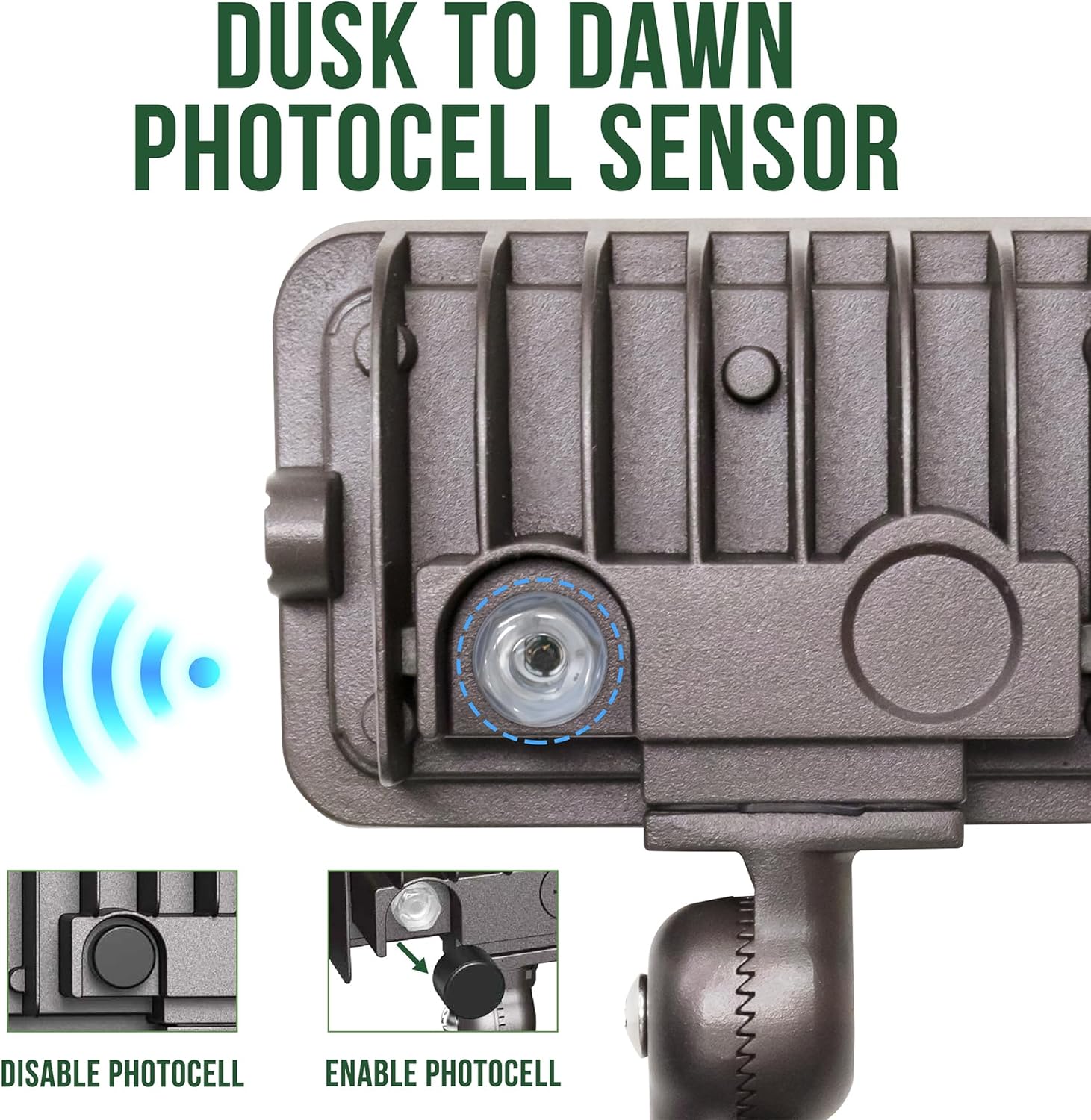 ✔ Auto On/Off at Dusk & Dawn: Enjoy ultimate hands-free convenience and energy savings. The built-in photocell sensor automatically turns the flood light on at night and off during the day. Bonus feature: A removable cap lets you easily disable the auto function if you prefer manual control.