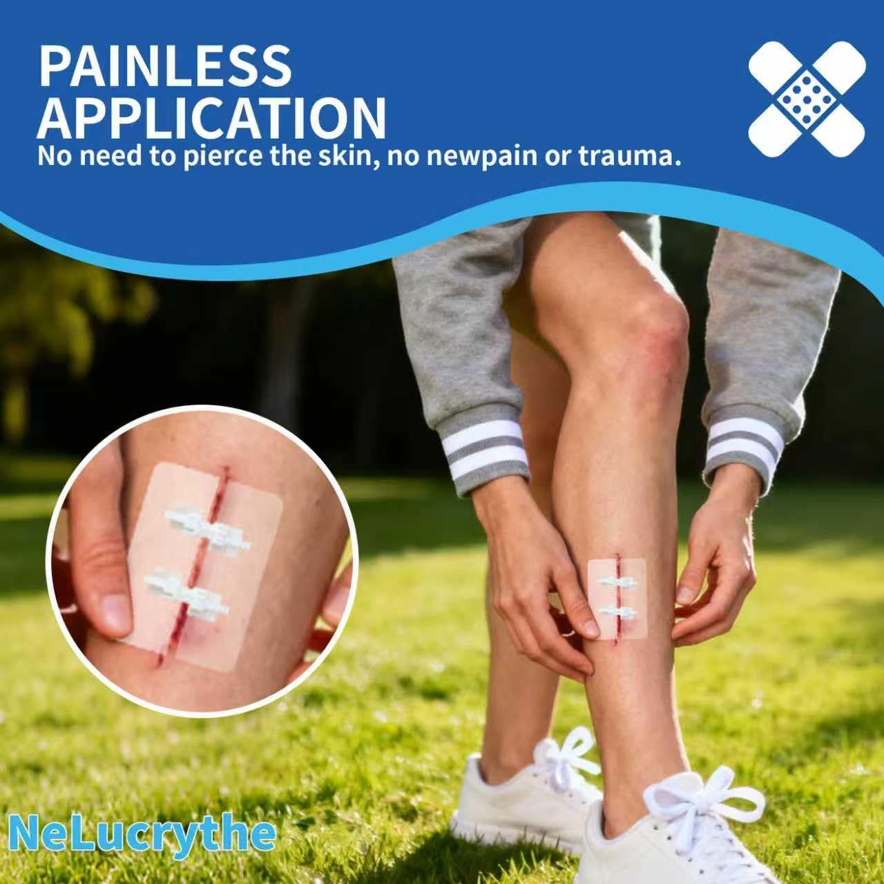 3. Painless Application – No Stitches Needed. The emergency laceration closure kit are designed for painless closure without secondary injury. Our innovative, stitch-free design uses adjustable, gentle tension to close wounds securely without piercing the skin, so there’s no sharp pain during application, and no extra trauma to your body. A great suture alternative for adult and children wound care.