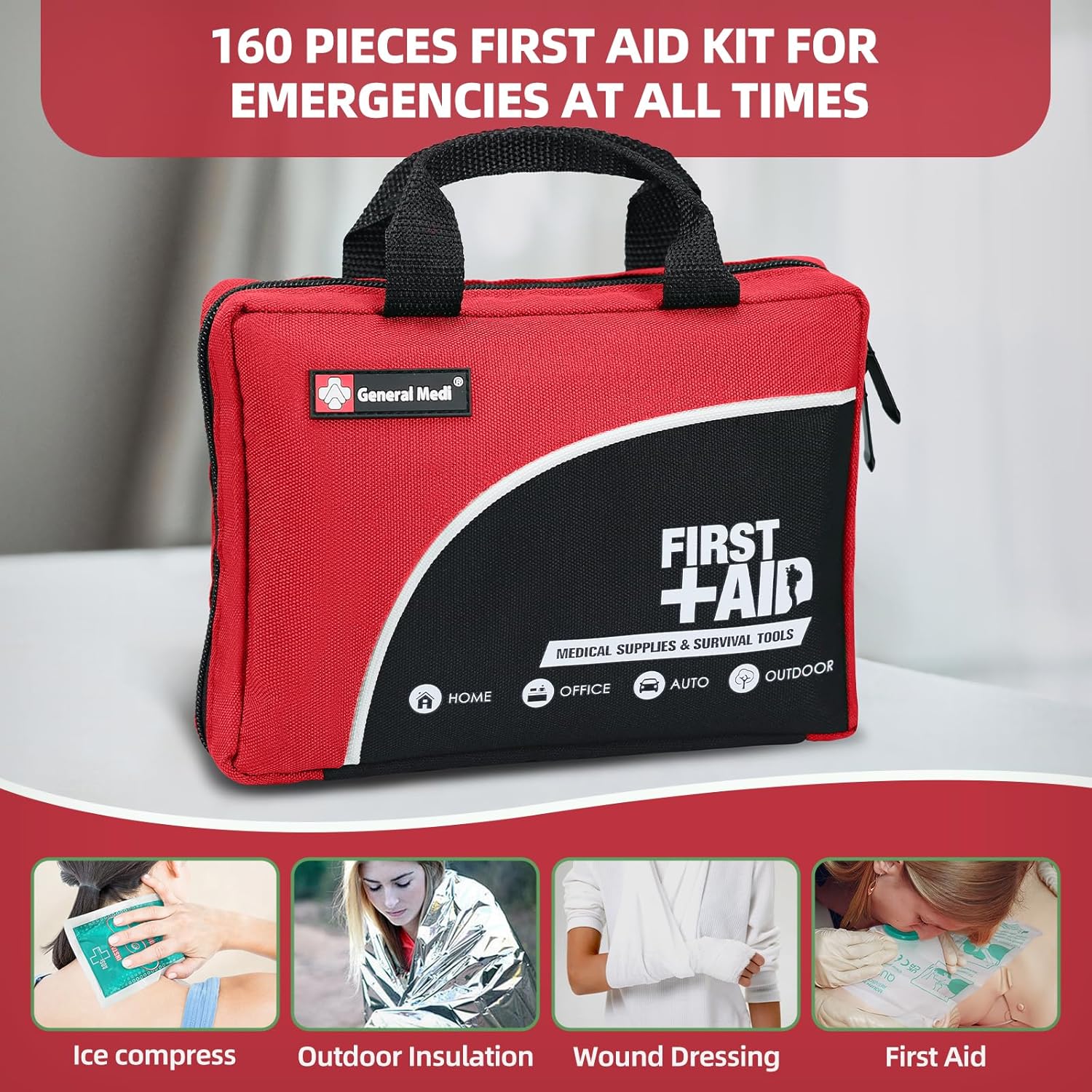 DURABLE AND LIGHTWEIGHT – (7.8″ x 6.3″ x 3.1″, weighs only 1.1 pounds). The bag is strong, compact and easy to carry, holds all the basic first aid supplies (160 pieces total). It is well-organized with multiple compartments and there is still additional space to add more items when necessary.