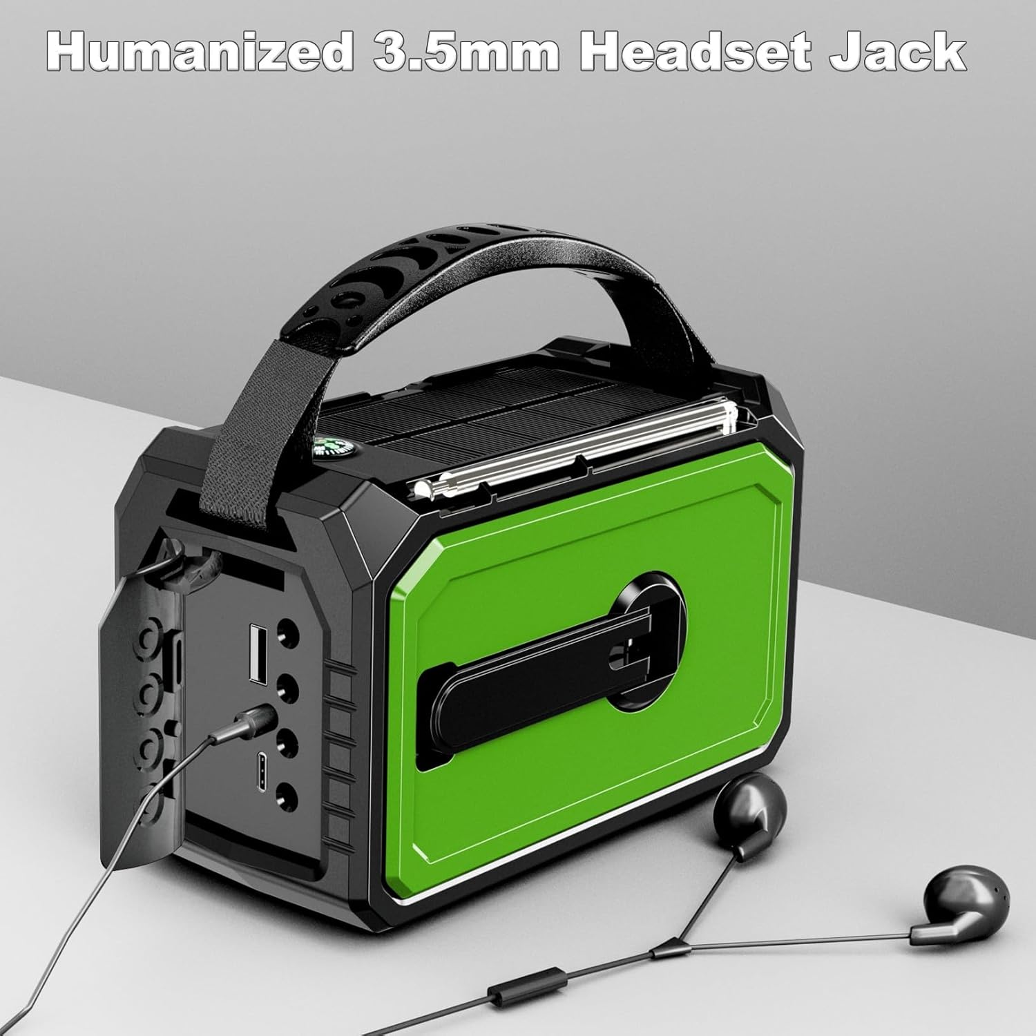 ULTIMATE SURVIVAL COMPANION WITH 6-IN-1 TOOLS Your Emergency Command Center! More than just a radio, it’s a complete survival kit. It integrates a super-bright flashlight, a reading lamp, a loud dual-mode SOS alarm, a precise compass, a headphone jack for private listening, and a durable design. Built for the toughest conditions, it’s the ultimate gadget for outdoor enthusiasts and emergency preparedness.