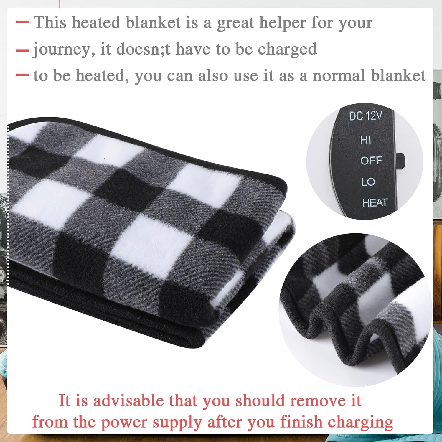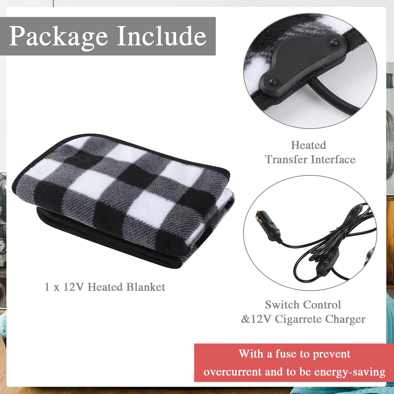 Suitable for travel: this fleece blanket is powered by the 12V auxiliary power outlet in your car, truck, SUV, or RV, making it perfect for on the go use; It’s perfect for cold commutes, camping, or tailgating, and a must-have in your car emergency kit