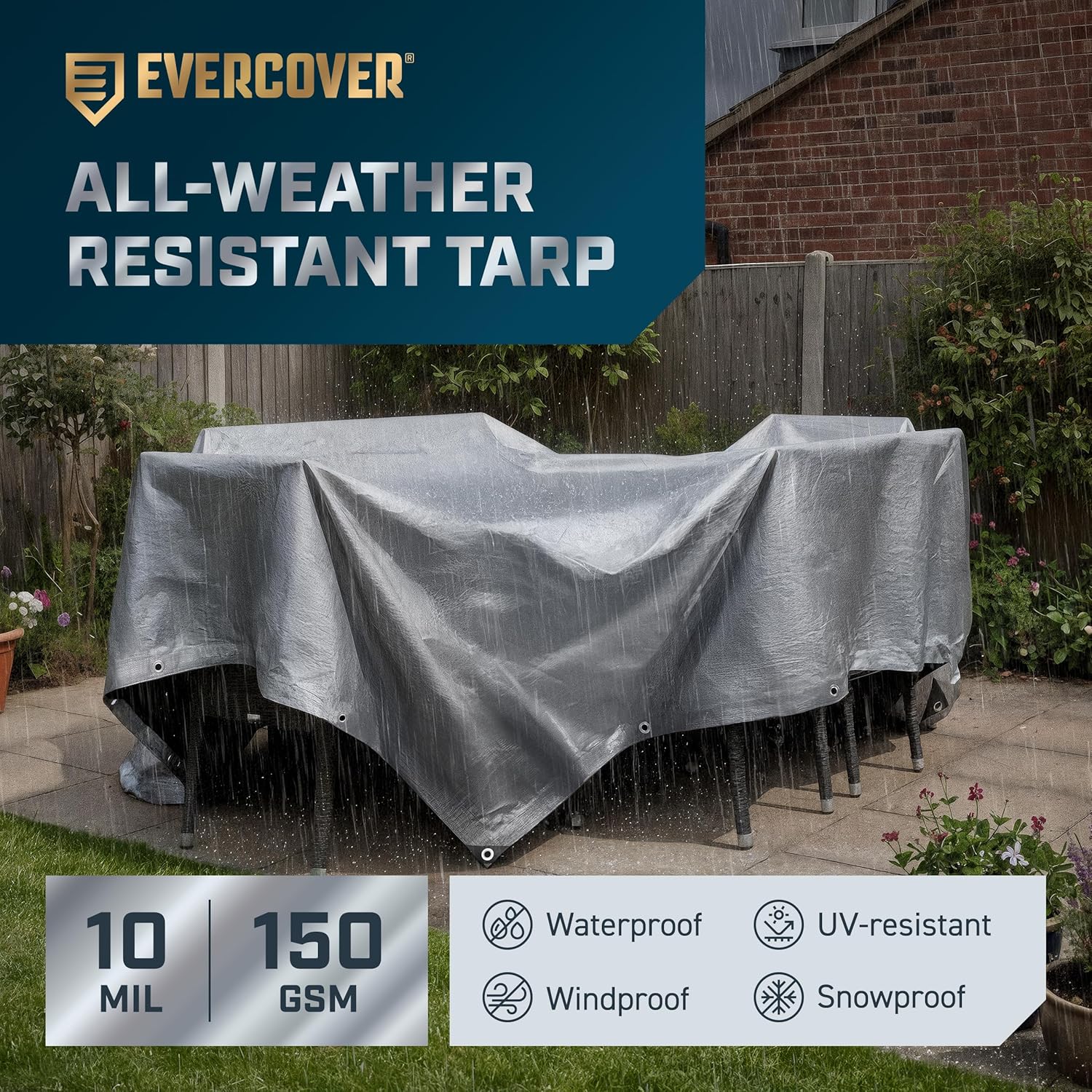 Heavy-Duty All-Weather Protection. This waterproof tarp resists rain, wind, snow, dust, and sunlight, including UV, with its strong and reliable all-season material to provide durable shelter for your home and belongings, no matter the weather