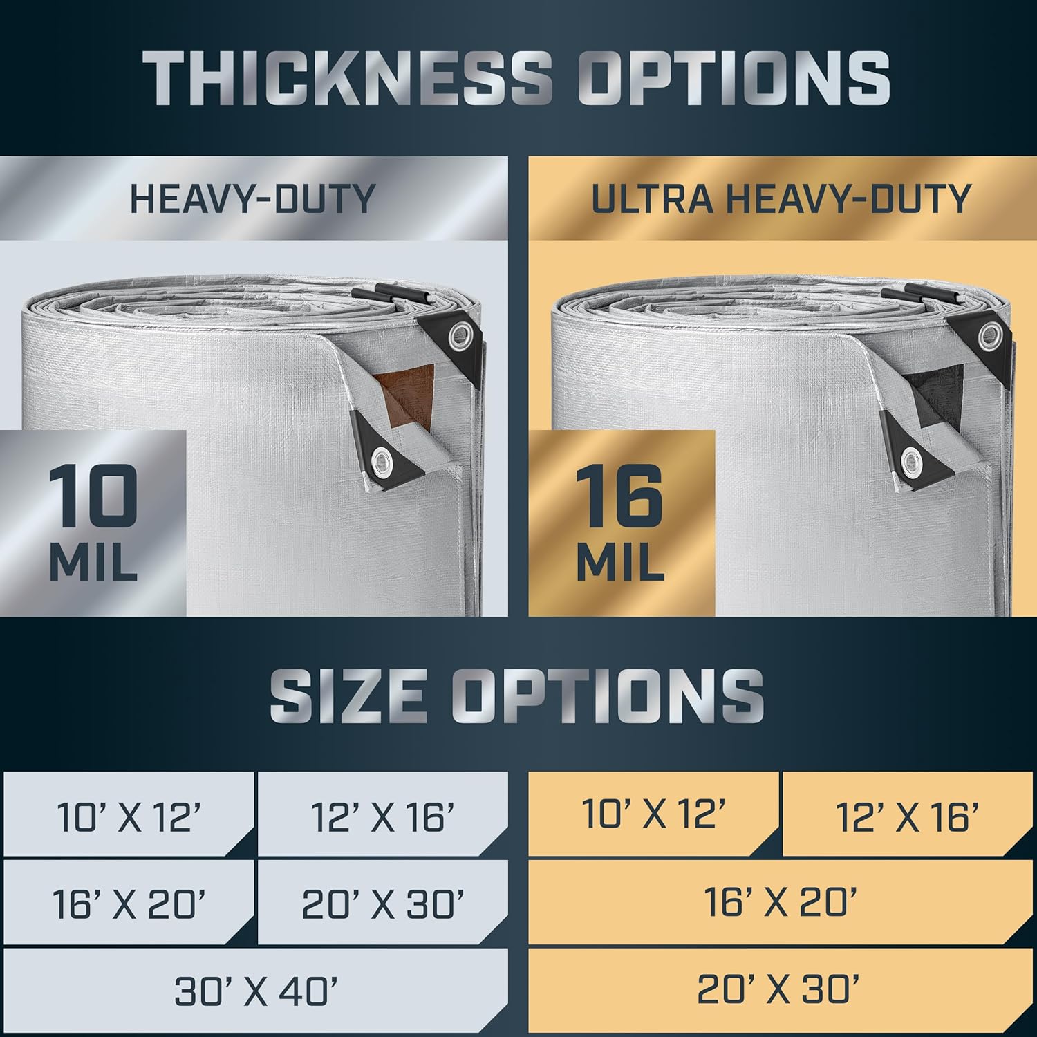 🥾 16×20 ft Tarps | All-Weather Tarp Waterproof UV-Resistant | 10 MIL=150 GSM Heavy-Duty Silver-Color Tarpaulin w/Reinforced Edges, Corners, Rustproof Grommets | Large Tarp | Lona Impermeable — Review, Key Features & Current Price