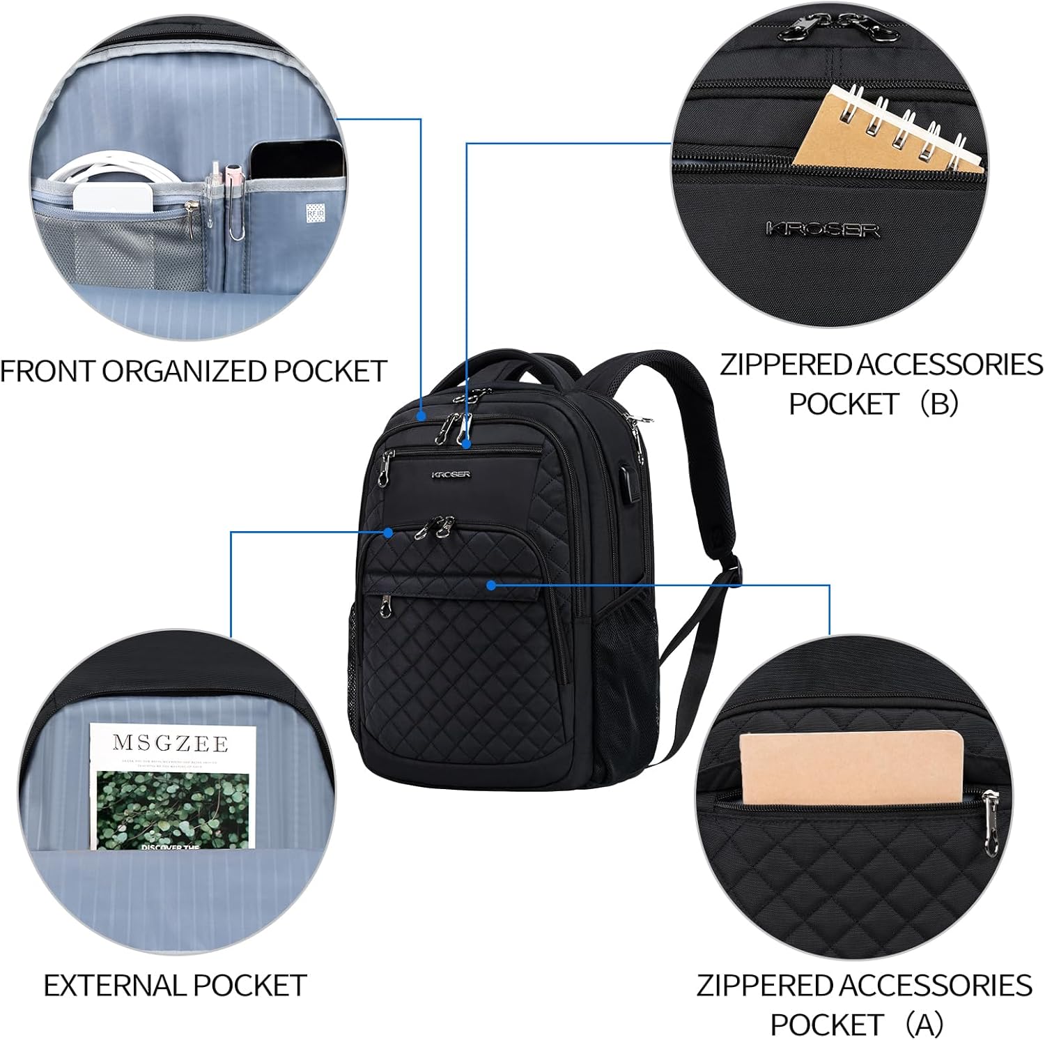 USB PORT : Built-in USB port is convenient to charge your cell phone by the connected power bank in a safe way. (POWER BANK is not included)