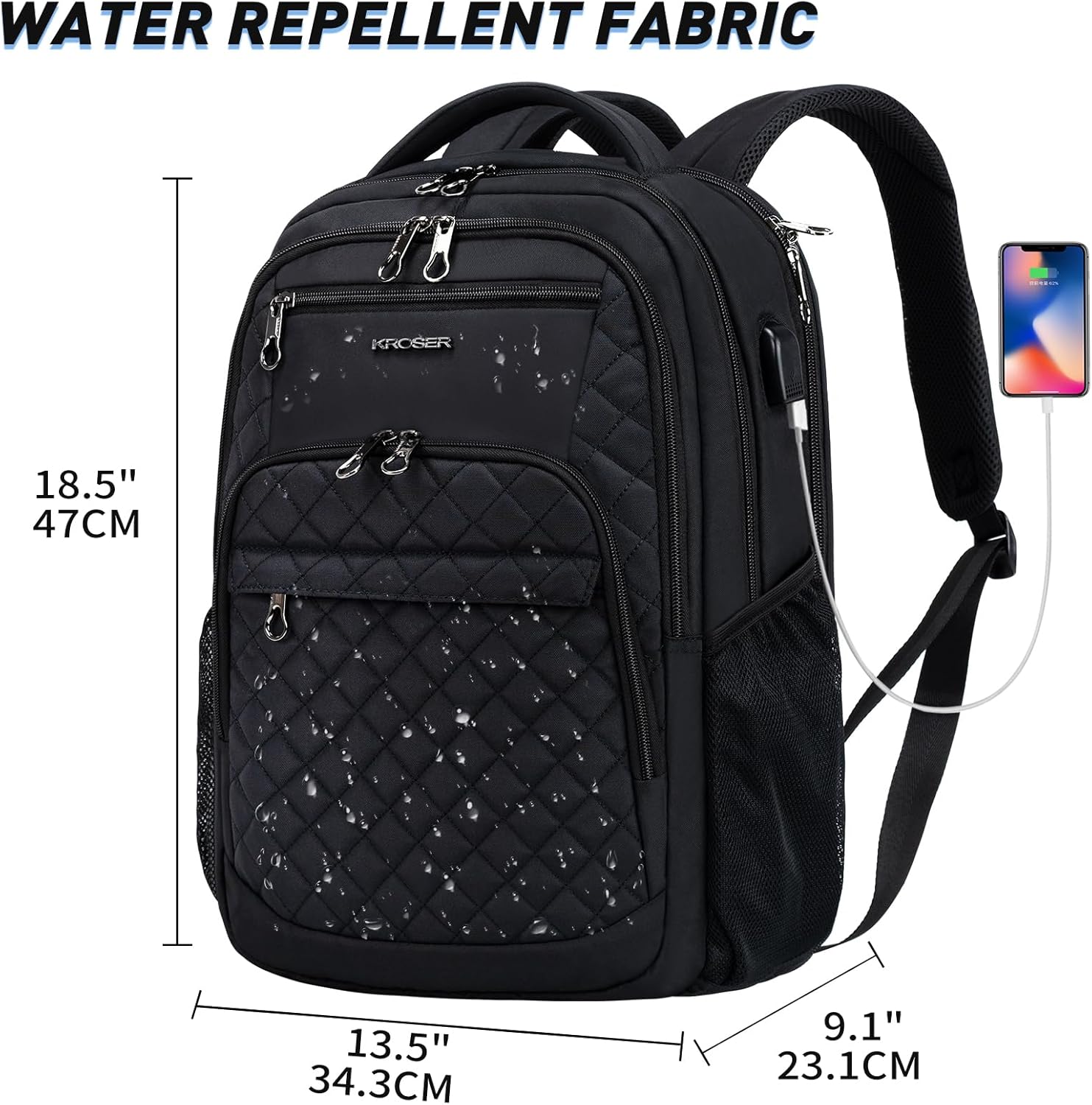 DURABLE MATERIAL: This stylish laptop backpack is made of high-quality water-repellent poly fabric; Dimensions: 19.3”x13”x7.9”, fits up to 17 inch laptop; Weight: 2.98LBS.