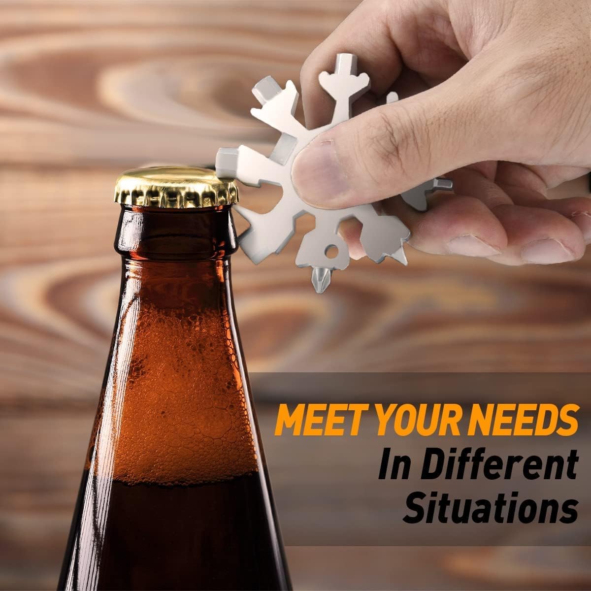 【18-in-1 Multitool】- The snowflake multitool includes 18 kinds of functional tools, such as bottle opener, flathead screwdriver, Phillips screwdriver, hex wrench, flathead screwdriver, hex wrench, can opener, etc