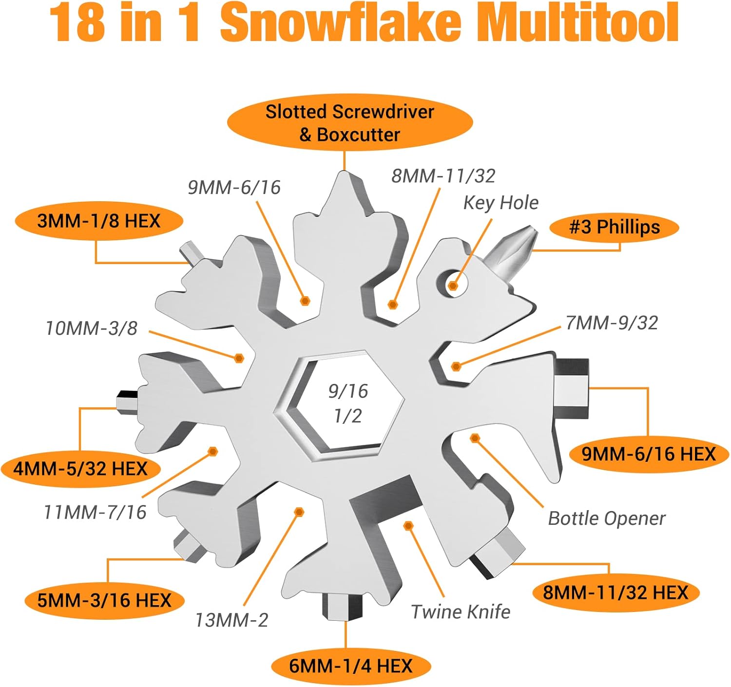 【Perfect Gifts for Men】: 18-in-1 Snowflake Multitool Can Also Be Hung in the Keyring, Backpack, or Decorated in the Christmas Tree, Also Can Be a Toy for Your Boy, Snowflake Multitool is Definitely a Cool Gadget for Men, Unique Fathers Day Gifts from Daughter, Son, Valentines Day Gifts