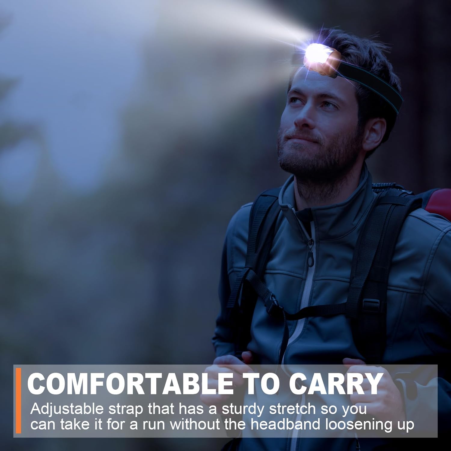 Wide Use: headlamp flashlight with powerful bright white LED and 3 settings high/medium/SOS strobe modes allows you to control the light intensity for indoor tasks, outdoor activities, camping, fishing, hiking, running, dog walking, to provide broad visibility