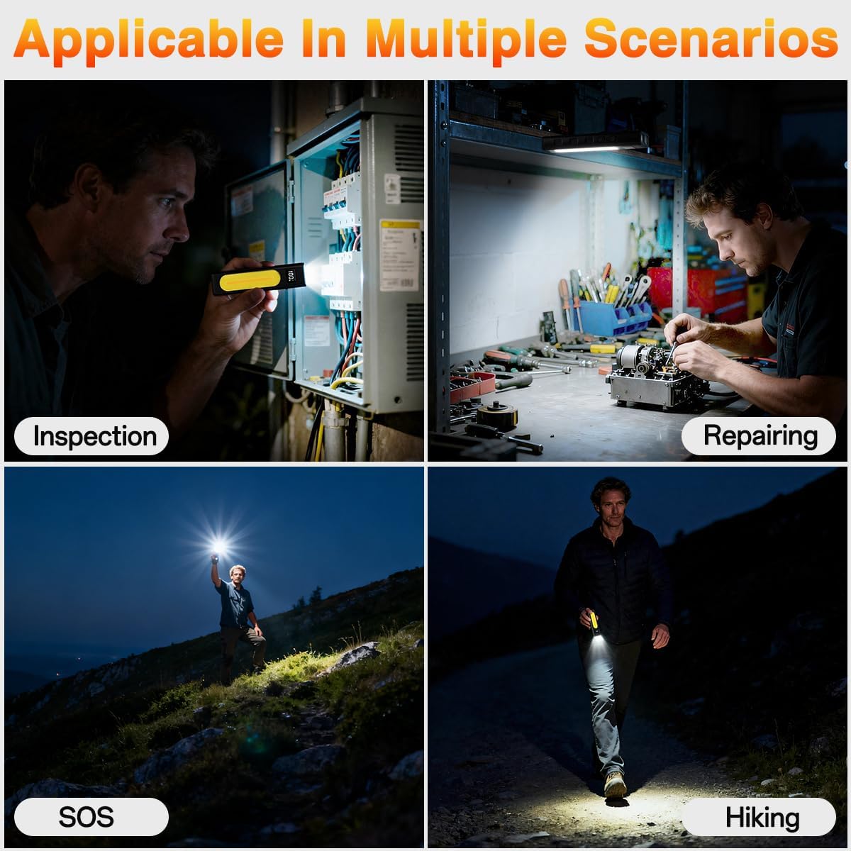 Super Bright Flashlight: EDC flashlight utilizes the latest upgraded LED chips to produce exceptionally bright light. The main light offers truly 800 lumens for targeted tasks, while the side light delivers truly 1800 lumens for broad-area coverage. This flexible lighting combination ensures reliable performance across a wide range of working scenarios.