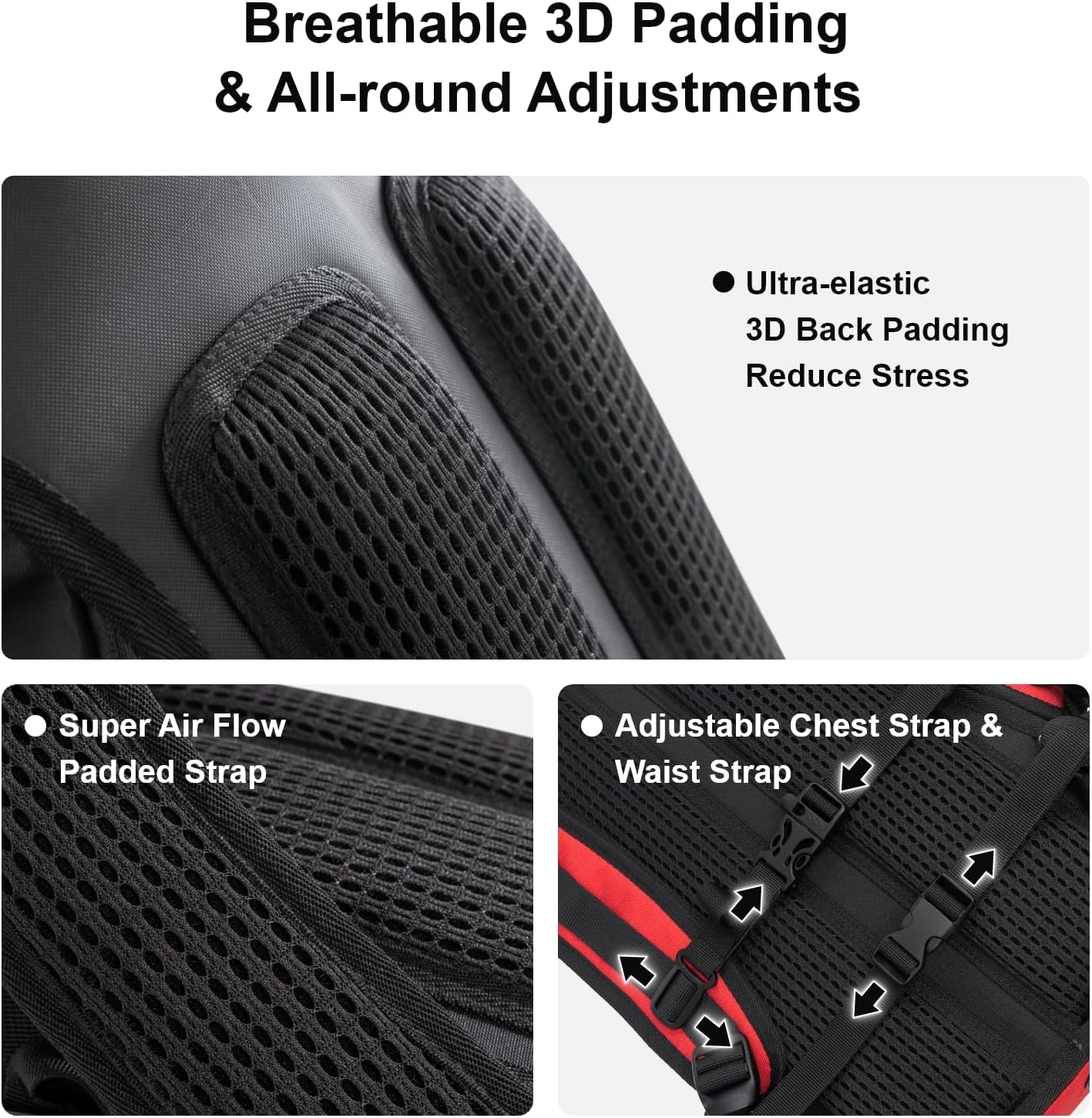 HIKING/CYCLING/RUNNING/SKIING WITH EASE: This 2 lbs lightweight water backpack features an ultra-elastic 3D breathable padded back, adjustable chest and waist straps to provide comfort and stability for all body sizes. This day pack has got you covered for all your adventures.