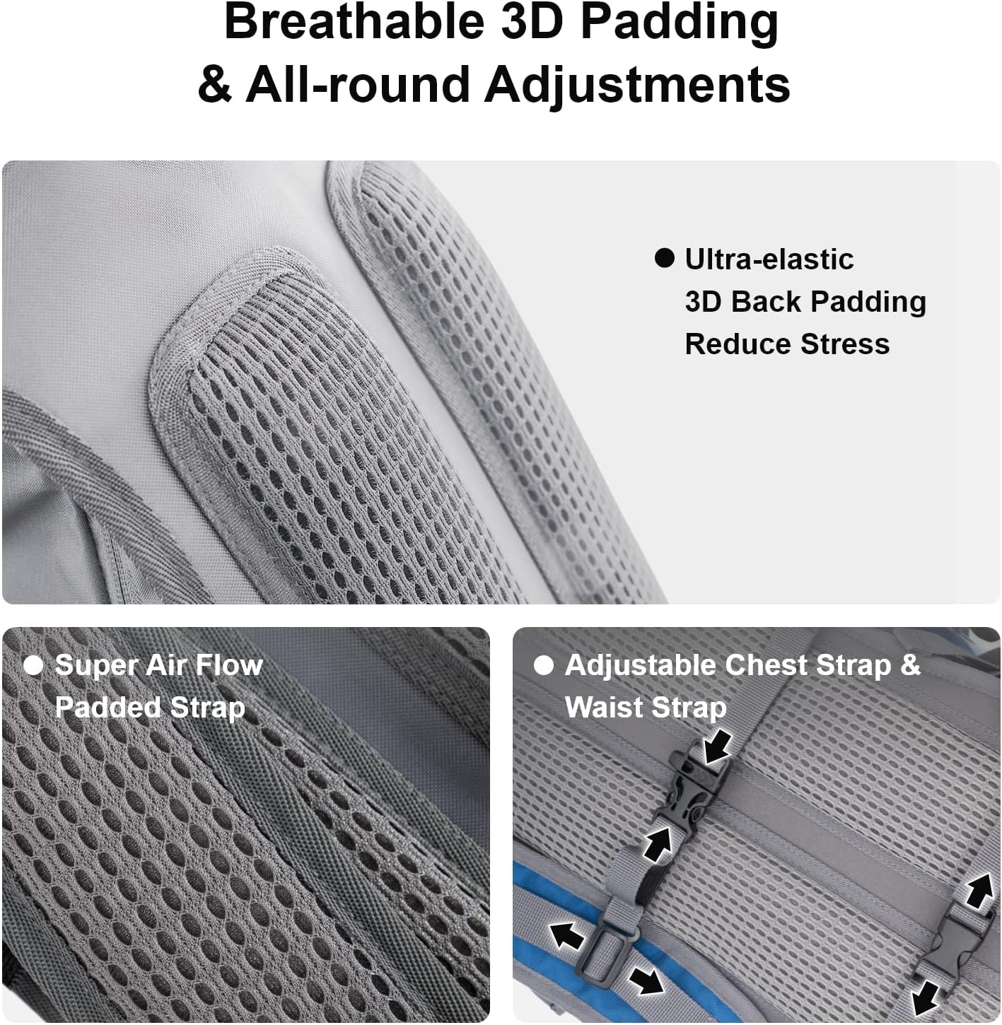 HIKING/CYCLING/RUNNING/SKIING WITH EASE: This 2 lbs lightweight water backpack features an ultra-elastic 3D breathable padded back, adjustable chest and waist straps to provide comfort and stability for all body sizes. This day pack has got you covered for all your adventures.