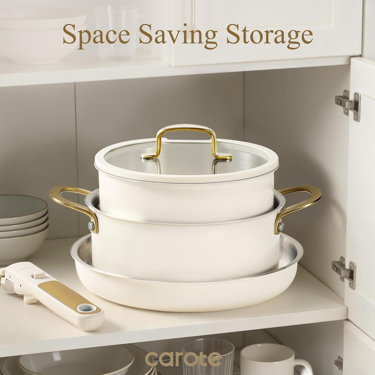 1. Space-Saving Stackable Design: Detachable handles enable easy storage, saving up to 70% cabinet space — nested like a compact stockpot. Ideal for small kitchens, RVs & organized storage.
