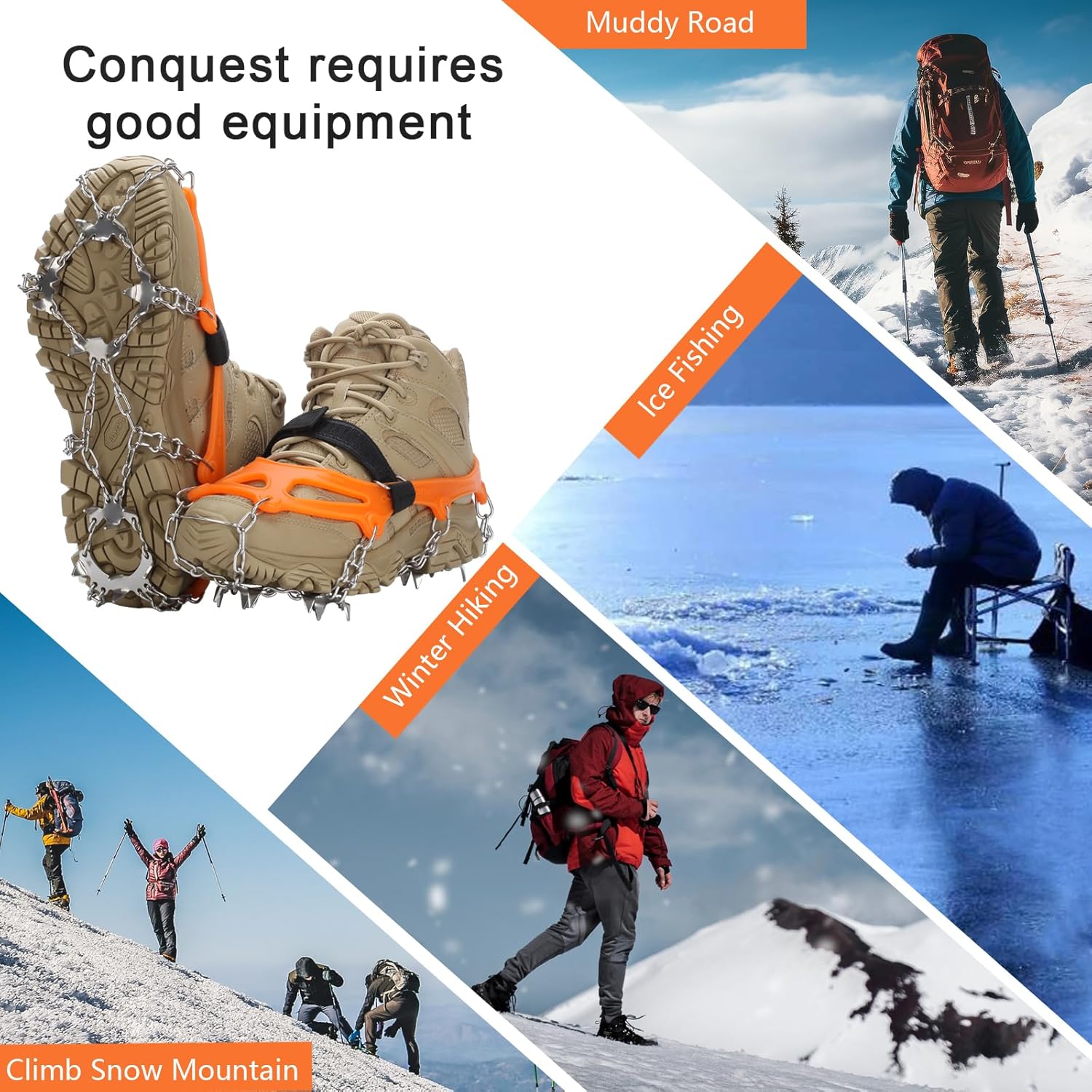MULTIPLE USES: Suitable Not Only For Outdoor Ice And Snow But Also For The City To Use During The Snowy Weather, Particularly Suitable For The Elder and Kids. Reduce The Risk Of Injury From Slips And Falls When Walk On Ice, Snow, Mud And Wet Grass, Or Other Poor Conditions.