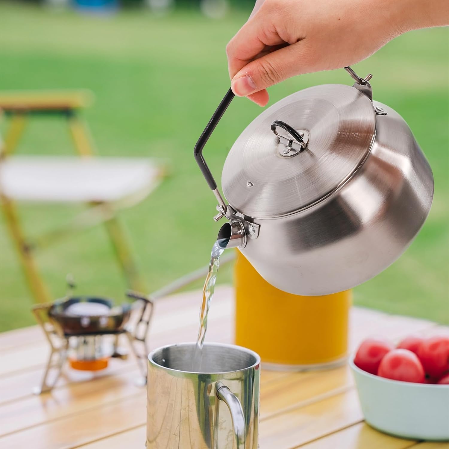 What You Get: The stainless steel camping kettle with 1L capacity could offer approximately 4 cups water or campfire coffee, which is perfect for sharing hot beverages with friends or family during your outdoor activities