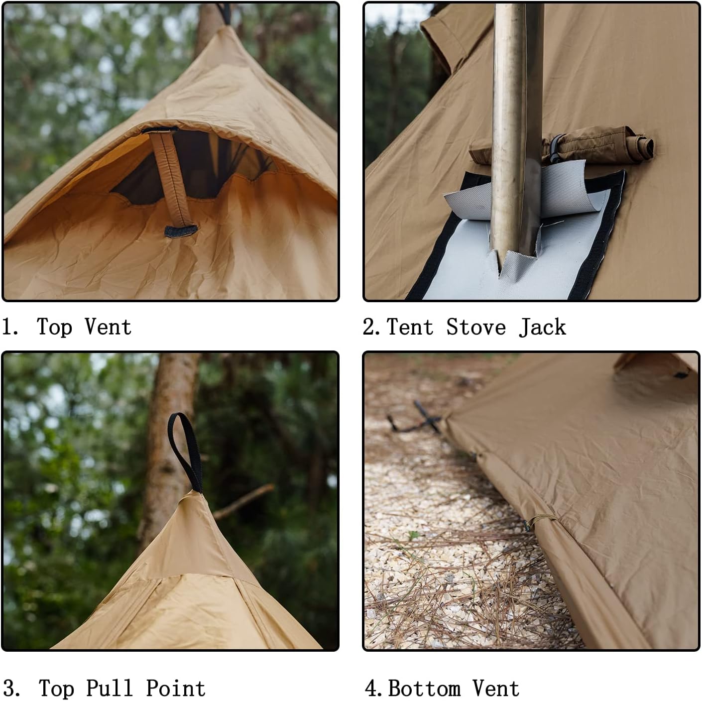 ✔VENTILATION: Ideal 4 season tent with flap-covered mesh vents around the perimeter and at the tipi top/ entrance for airflow.