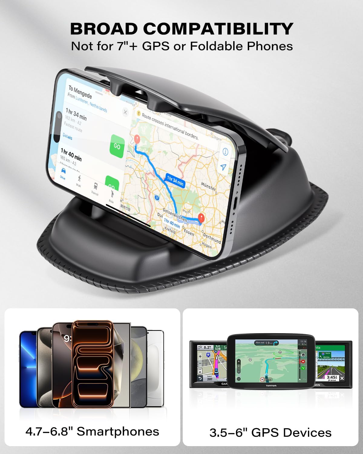 Important Note: For optimal performance, use only on flat, smooth, and clean dashboards. May not work properly on sloped, curved, textured, or uneven surfaces.Not compatible with tablets, iPads, foldable phones, or portable CarPlay units