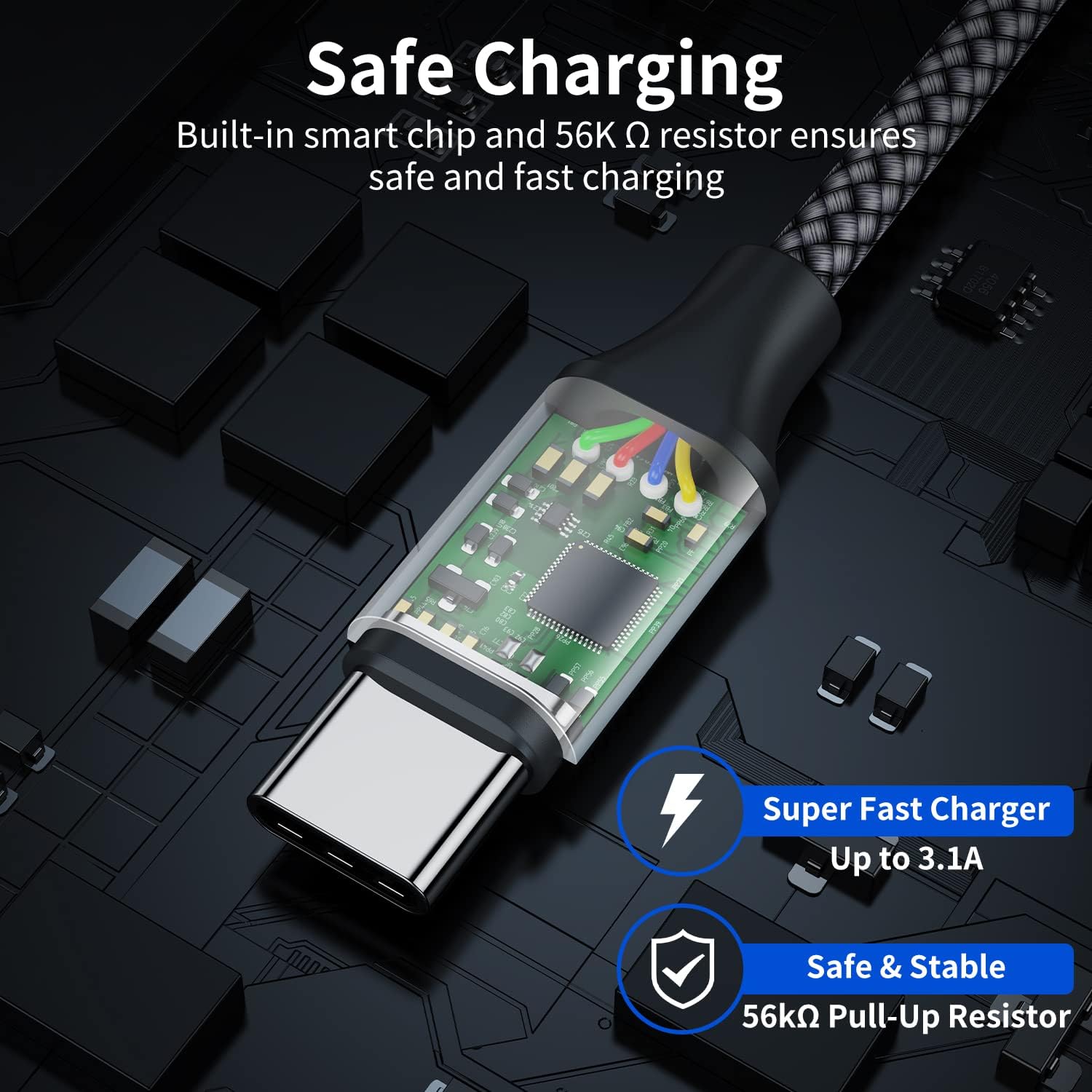 【Ultra-durable】:10X Stronger and Perfect: Encased with Triple-Braided Nylon fiber, which make it have excellent anti-twisting & Abrasion-proof property. This USB Type C Cable can withstand at least 10,000 cycles of 90 degree bend test. Ideal for your heavy daily use
