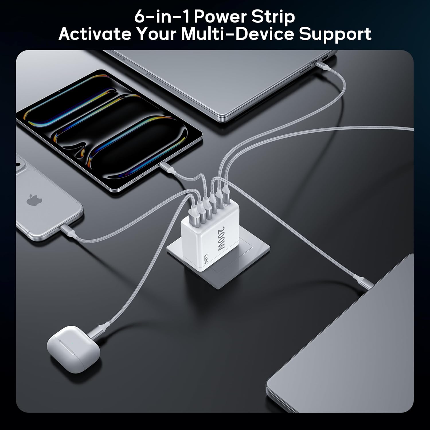 【SIX-in-One】: With 3 USB-C Power Delivery port and 3 USB A . 30W x 2 USB C and 1x65W USB-C and 3 USB A 15W. you’re ready to charge Six of your devices simultaneously. Extended power cord for convenience and portability Handy for home office and on-the-go charging.