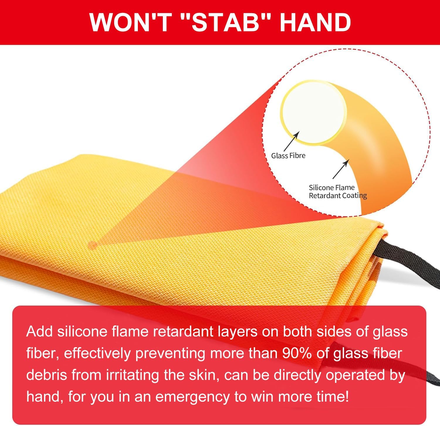 WON’T “STAB” HAND: Unlike other emergency fire blanket, ifory fire blankets are made with innovative technology. Adding silicone flame retardant layers on both sides of glass fiber, effectively stops the glass fiber debris from irritating the skin, providing better protection for your skin and hands