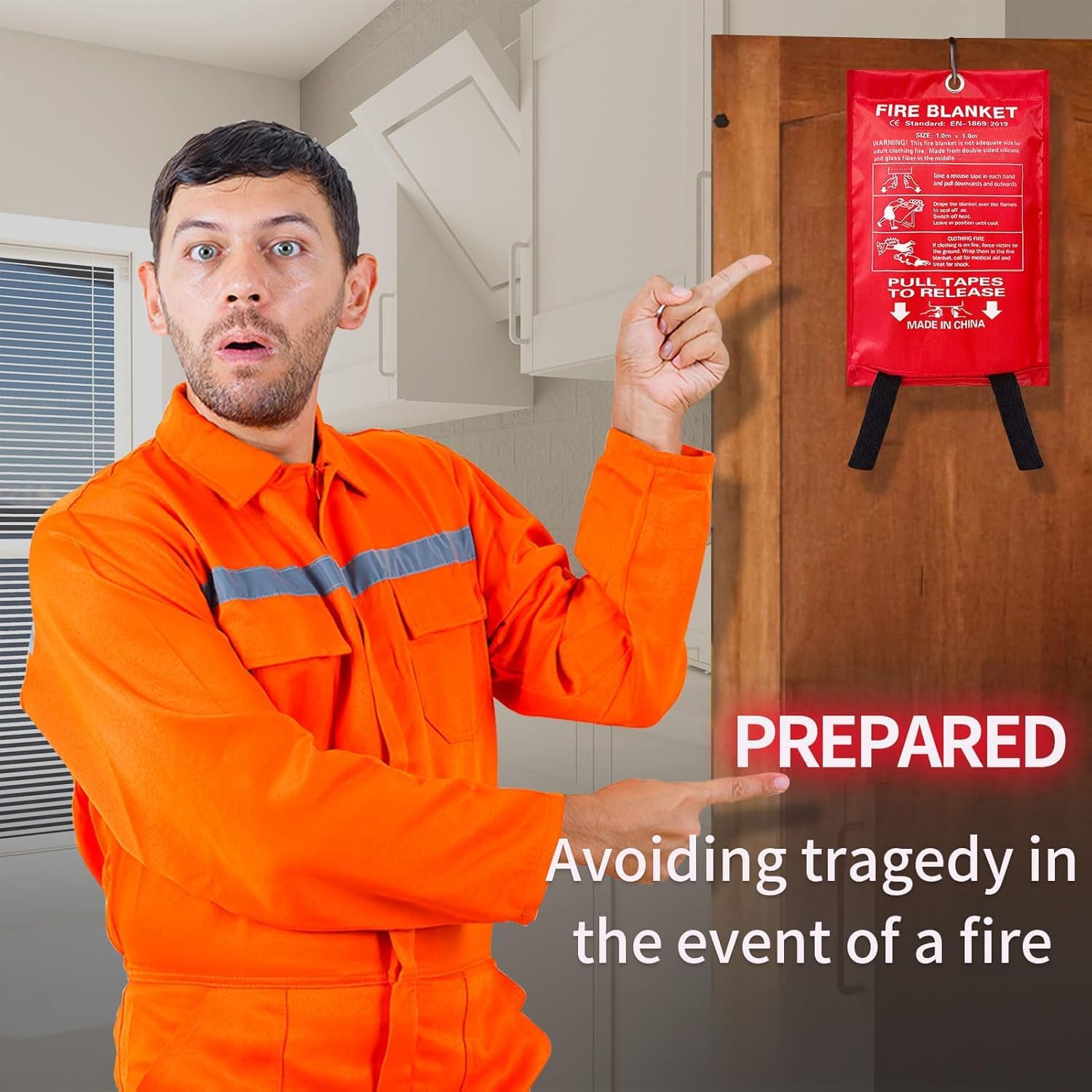 SUPER HEAT RESISTANT: Made of two layers of glass fiber coated with silicone flame retardant layer, and one layer of flame retardant film, 100% made of high-quality flame retardant materials. Our fire blanket for home and kitchen meets the CE standard (EN-1869:2019) and can protect against high temperatures up to 1076°F (580°C) for a short time!