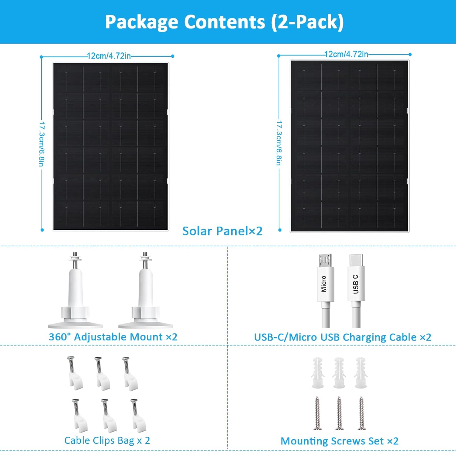 🥾 4W Solar Panel for Security Camera, USB-C/Micro USB Solar Charger for Rechargeable Battery Cameras, IP66 Waterproof, 360° Adjustable Mount, 9.8FT/3M Cable, 2 Pack — Review, Key Features & Current Price