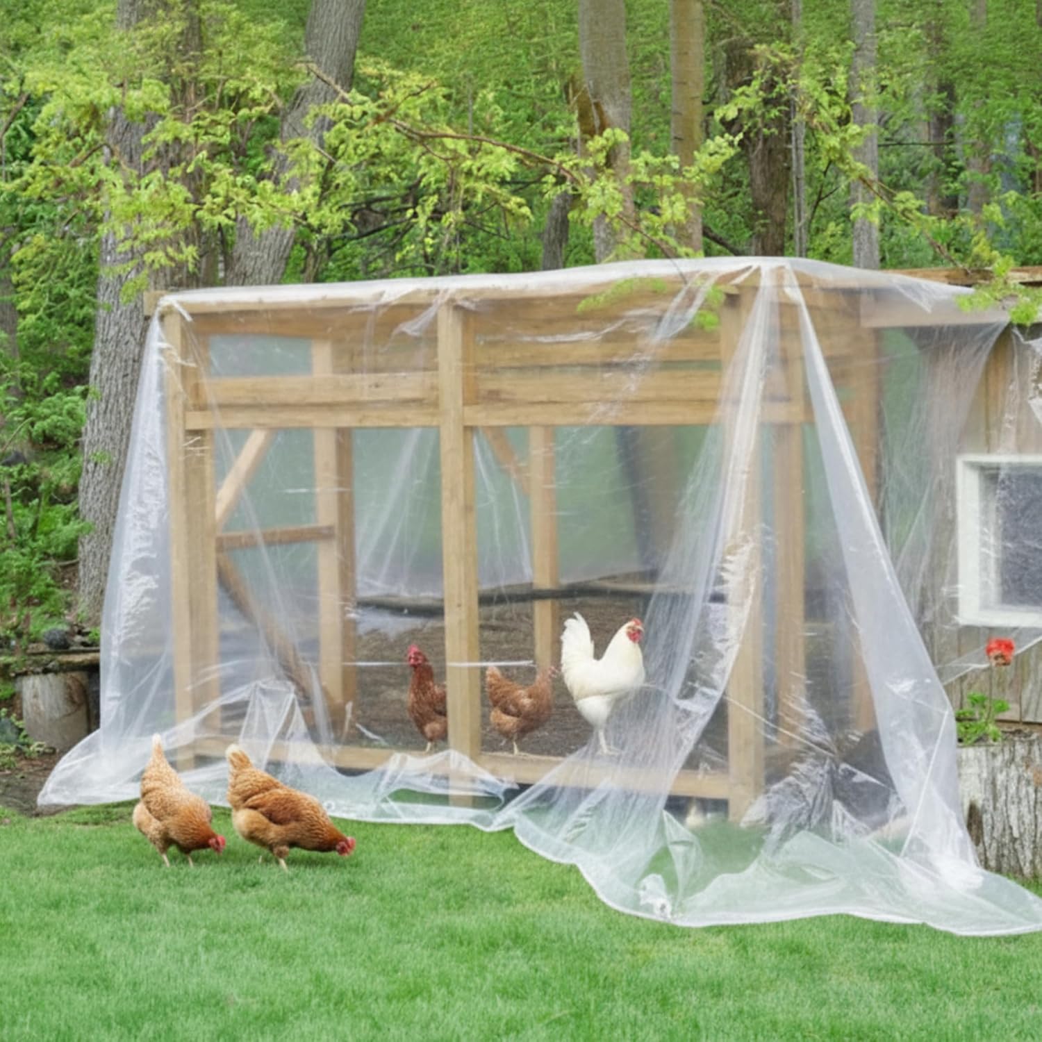 Versatile Usage: these clear waterproof tarps is not only applied to protect chicken coop, gardens, greenhouse potted plants and vegetables, but also used as factory insulation, moisture-proof mats, household dust covers, car covers and so on, with a wide range of uses