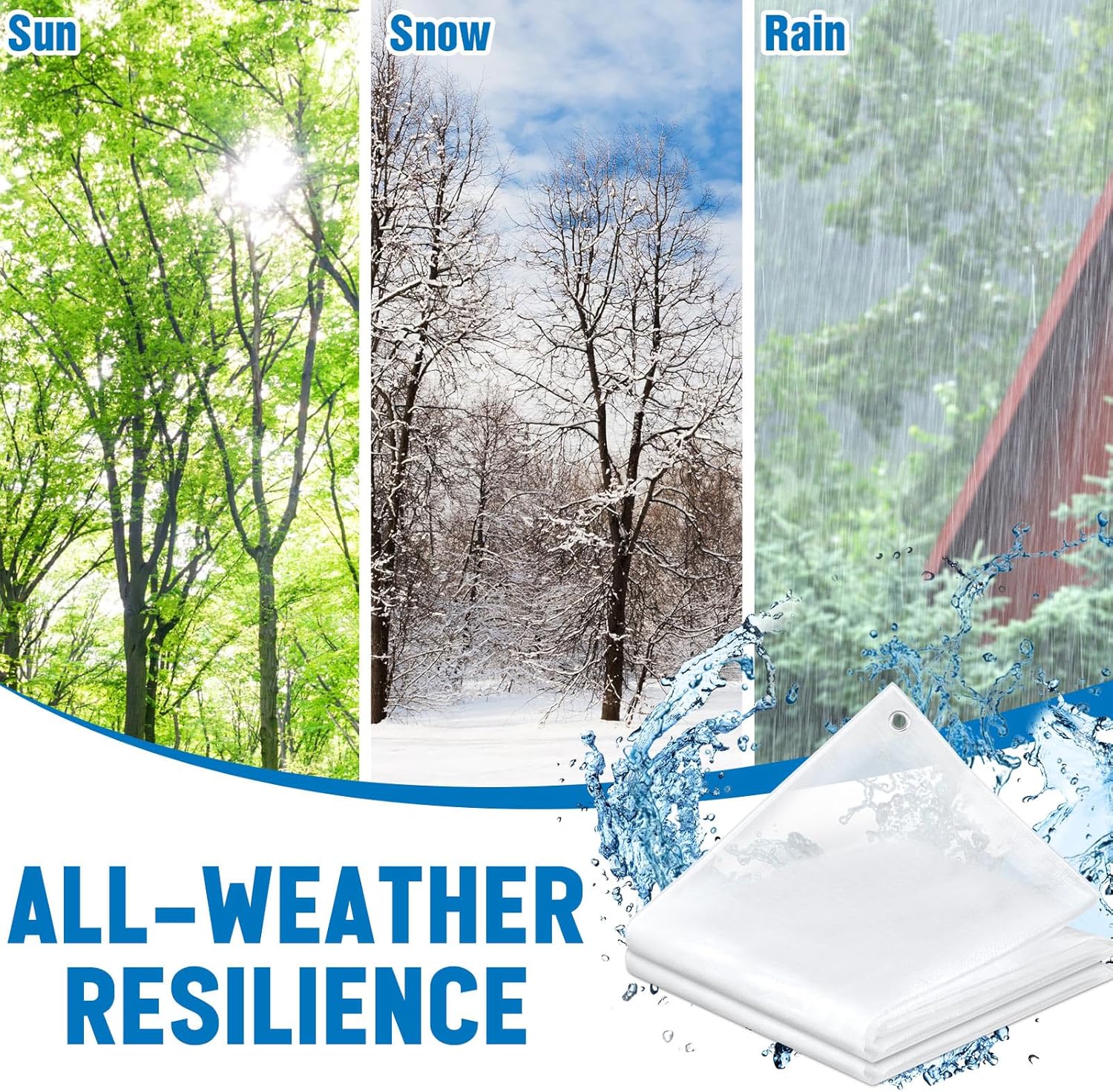Easy Fixation: equipped with grommets, these clear heavy duty tarps ensure easy fixation; Warm note: Our outdoor tarps are primarily waterproof and cannot withstand strong winds