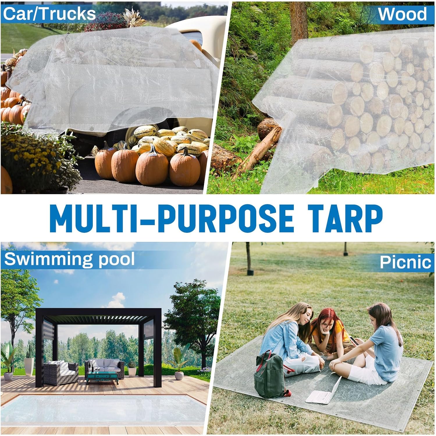 Easy Fixation: equipped with grommets, these clear heavy duty tarps ensure easy fixation; Warm note: Our outdoor tarps are primarily waterproof and cannot withstand strong winds