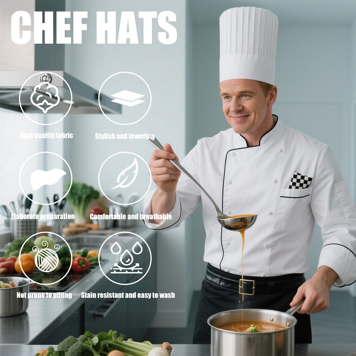 🥾 2PCS Tall Chef Hat 29cm Adjustable Elastic Breathable Kitchen Cooking BBQ Chef Cap for Adult — Review, Key Features & Current Price