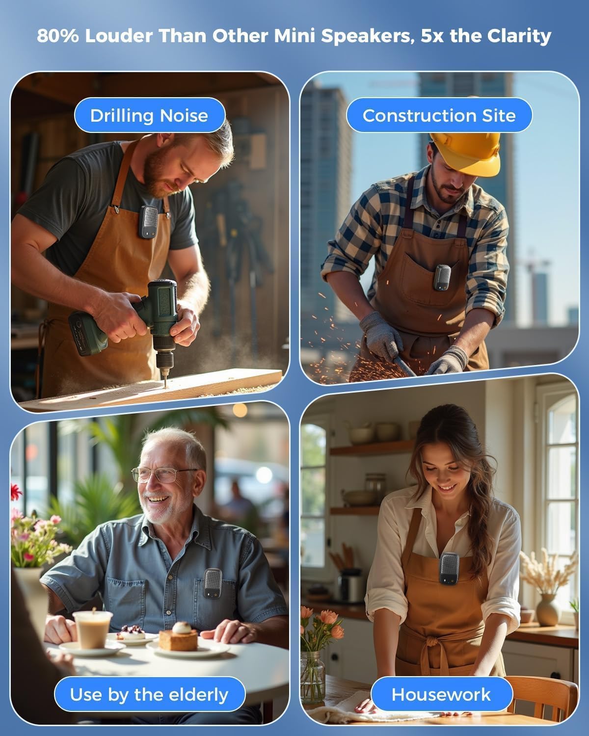 5x Stronger Clip & Ultra-Lightweight Portability: Weighing only 2.4 ounces, it’s smaller than typical Bluetooth speakers and slips easily into a pocket or bag. Its reinforced, non-slip, serrated clamp increases the clamping force five times, allowing it to securely attach to a shirt, backpack, belt. Whether you’re wearing work clothes, working on a construction site, in the workshop, or gardening, simply clip it to your collar or pocket edge for hands-free, clear calls and smooth music playback.Perfect for trucker drivers, powerful sound quality accompanies you on your safe journey.