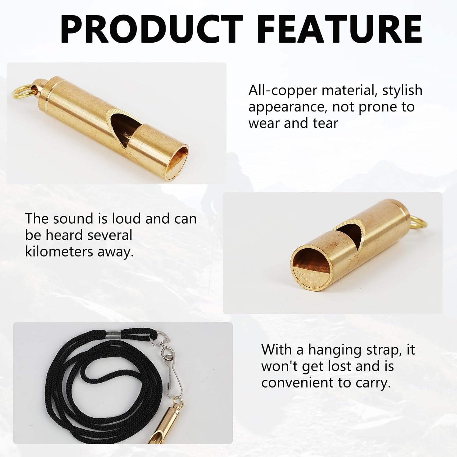 125dB ultra-loud alert: This brass survival whistle produces a piercing sound audible up to about 1 mile away(if nothing block or noise), making it ideal for wilderness rescue, storm alerts, or calling back pets during training sessions.