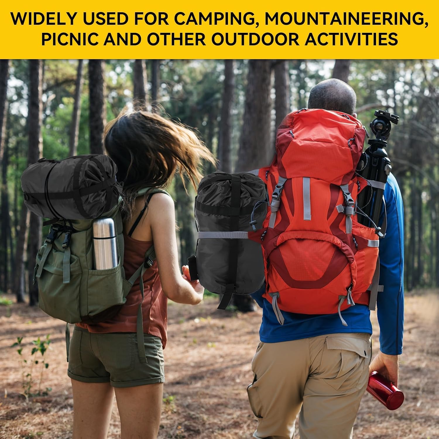 MULTIPLE APPLICATION SCENARIOS: Camping sleeping bag stuff sacks is widely used for outdoor activities such as camping, mountaineering and picnics, compression stuff sack for sleeping bag bring much convenience for your life.EASY TO OPEN AND CLOSE: Compression sack for sleeping bag, sleeping bag bag pull rope design is convenient for customers to close the exit, the process is not complicated, and the operation of bag for sleeping bag is simpleCONVENIENT BELT DESIGN: Compression bag for sleeping bag, the belt at the bottom of sleeping bag sack can be used as a handle, stuff sack for sleeping bag is convenient for customers to carry with them on the roadEASY TO CARRY: Sleeping bag stuff sack makes compression bag easy for you to store your sleeping bag properly in a compact size for easy carrying, sleeping bag sack is very easy to carryPREMIUM MATERIAL: Sleeping bag compression sack is made from premium Oxford cloth and nylon tape, sleeping bag storage is durable and reusable