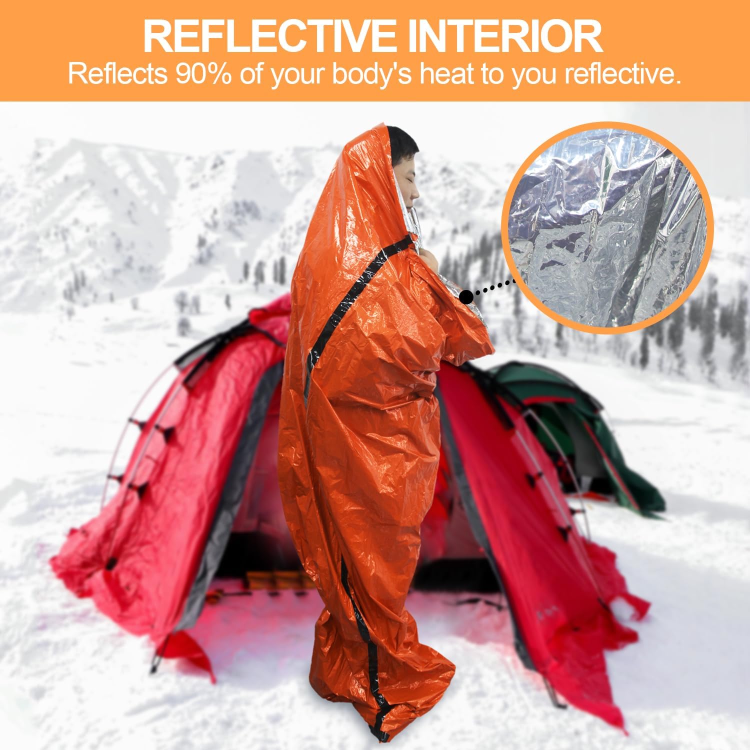 Whether it’s hiking in the mountains, camping, snow exploring, or as an emergency supply to deal with emergencies such as natural disasters at home or in the car, this emergency insulated sleeping bag is your best choice, so that the warmth can walk with you, and you will not be afraid of the cold challenge.