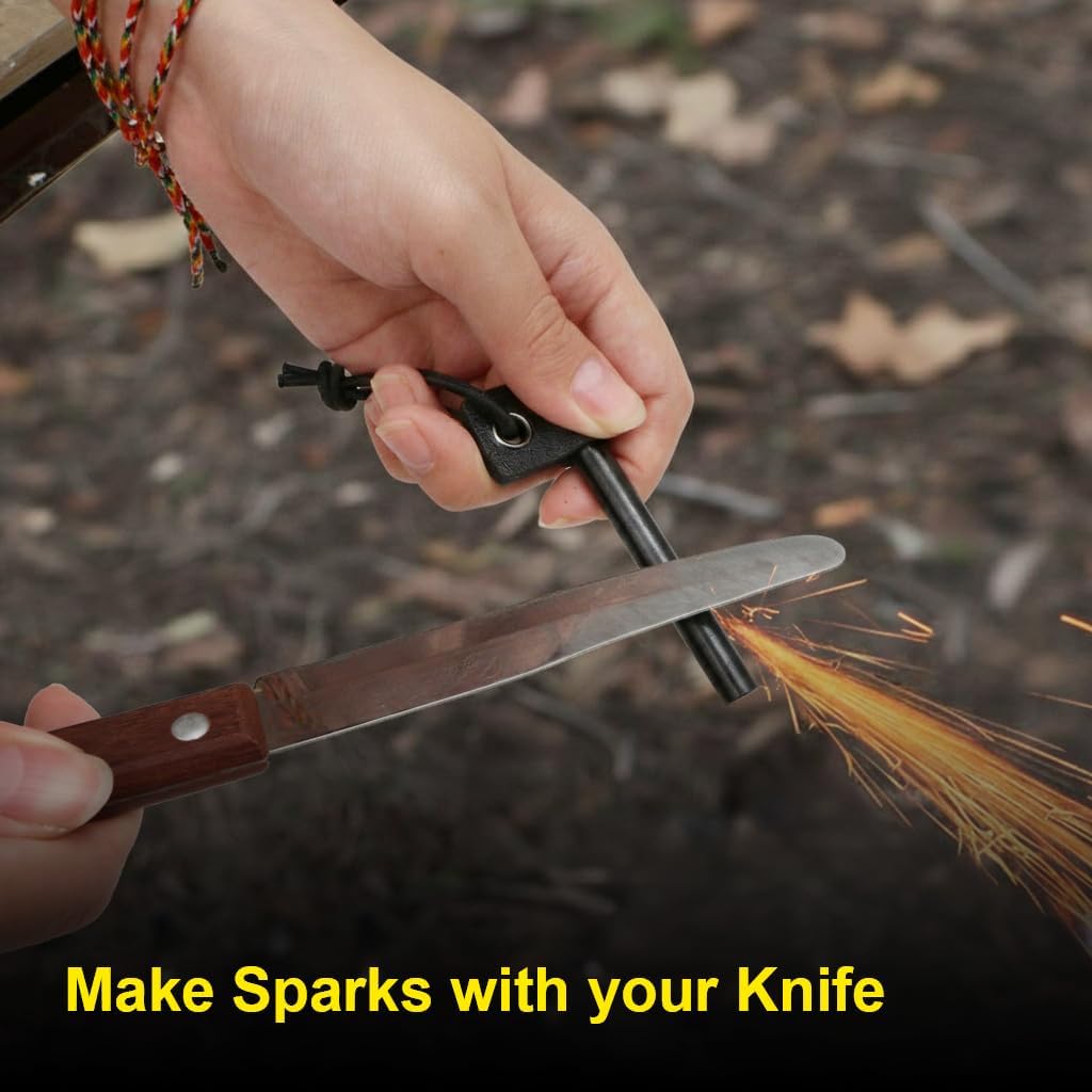 𝐇𝐢𝐠𝐡-𝐪𝐮𝐚𝐥𝐢𝐭𝐲 𝐦𝐚𝐭𝐞𝐫𝐢𝐚𝐥: The fire starter rod is made from solid magnesium, producing strong, reliable sparks every time. The holder is built from sturdy, weather-resistant material, designed to stay durable, flexible, and secure during outdoor use. Each holder has been tested on over 100 knife sheaths for proven strength and reliability.