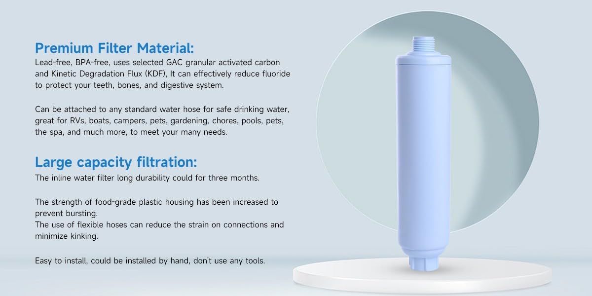 ✅ LONG-LASTING DURABILITY: The inline water filter is designed to be long-lasting, with one RV filter capable of filtering 1000 gallons of water. It can be used throughout the entire camping season, lasting up to three months. This means you can enjoy clean, safe, and crisp-tasting drinking water without the need for frequent filter replacement.