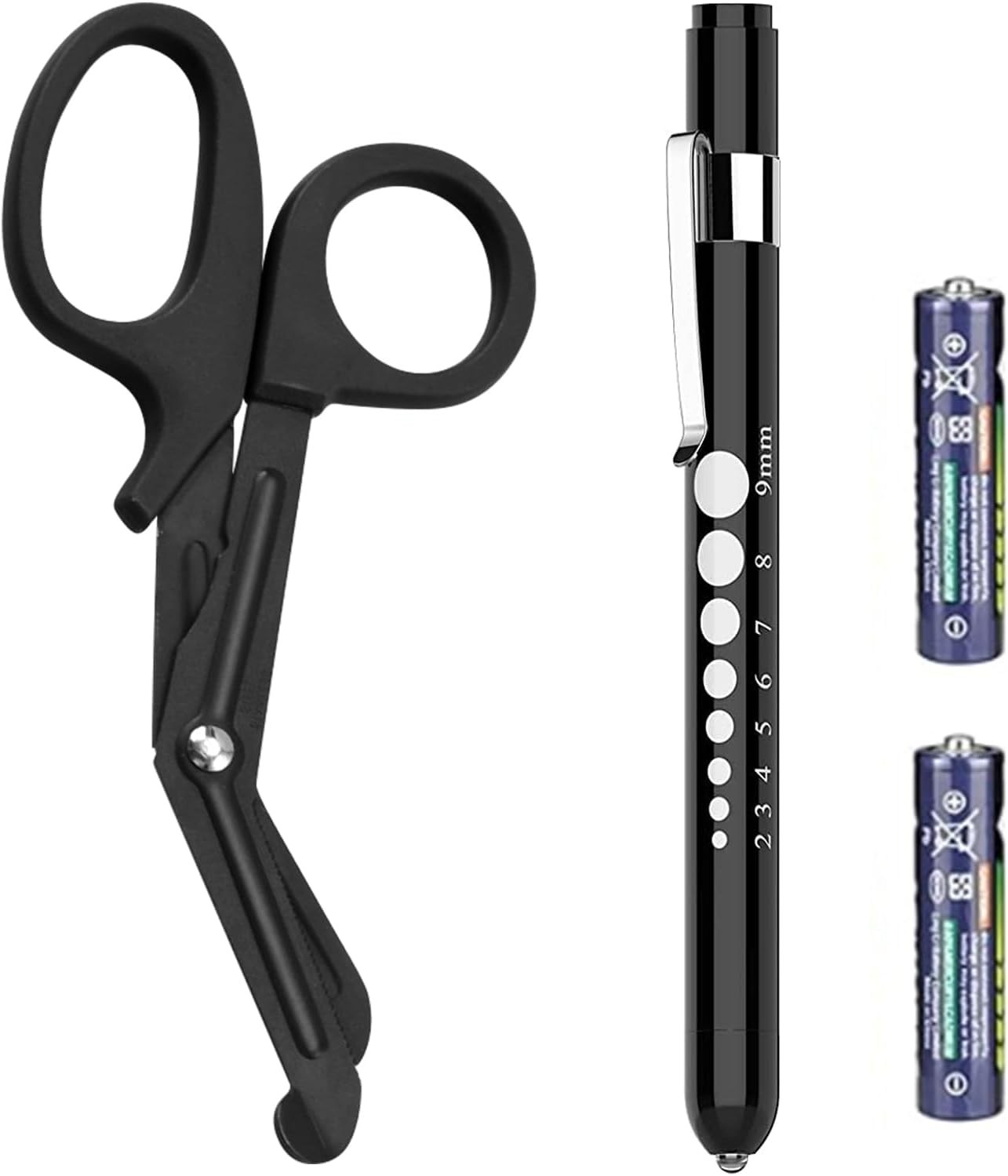 【Perfect Medical Kit】You will get 1 pack of medical pen light (with 2 AAA batteries) and 1 pack of trauma scissors. It is the perfect first aid kit for nurses, doctors and nursing students. Ideal for hospitals, medical offices, emergencies or home etc.
