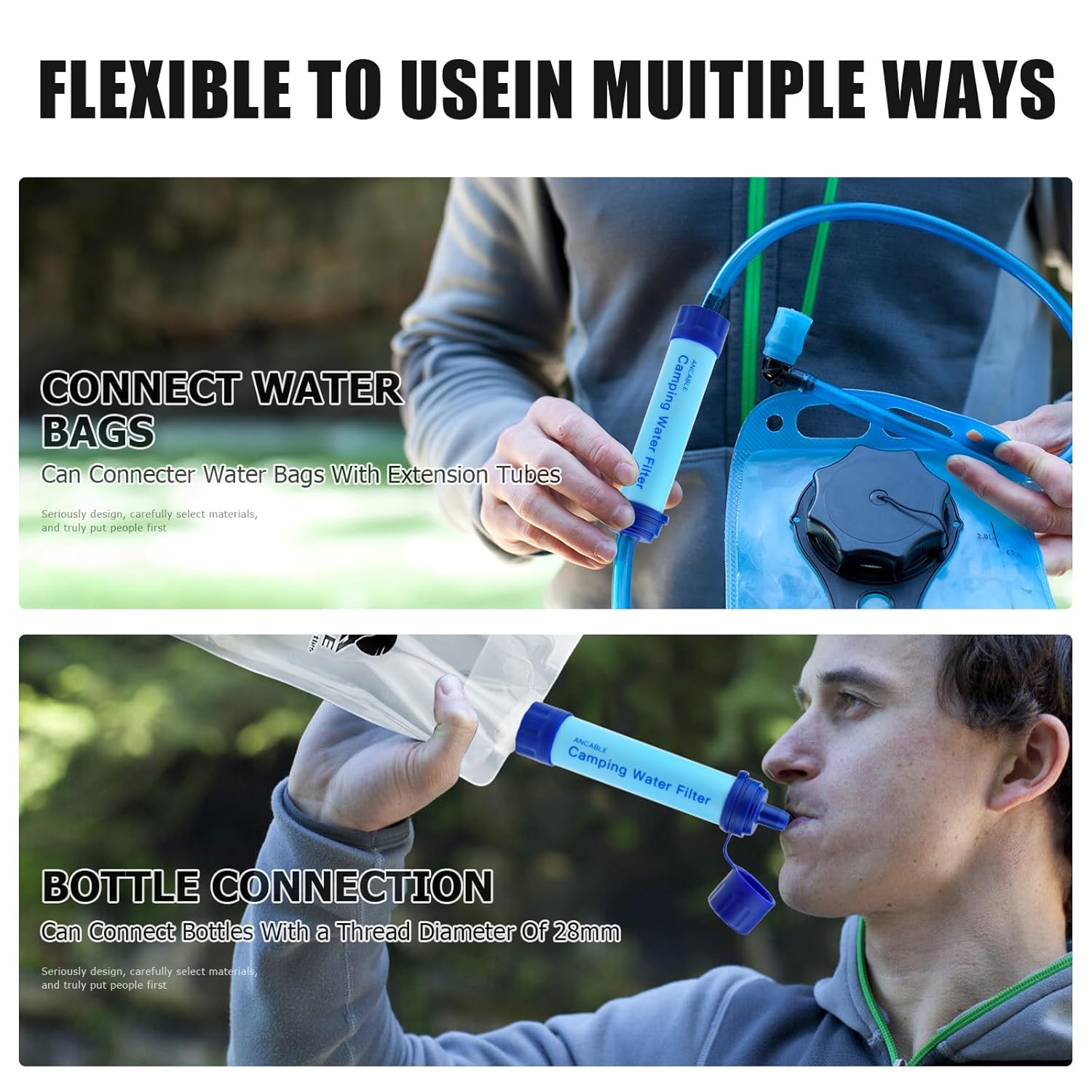 High Quality Materials – made of durable food grade plastic and made of ABS without bisphenol A, ideal tools for various purposes such as backpack travel equipment, hiking equipment, travel accessories, camping safety and survival equipment, and emergency preparedness items, ensuring safe drinking water