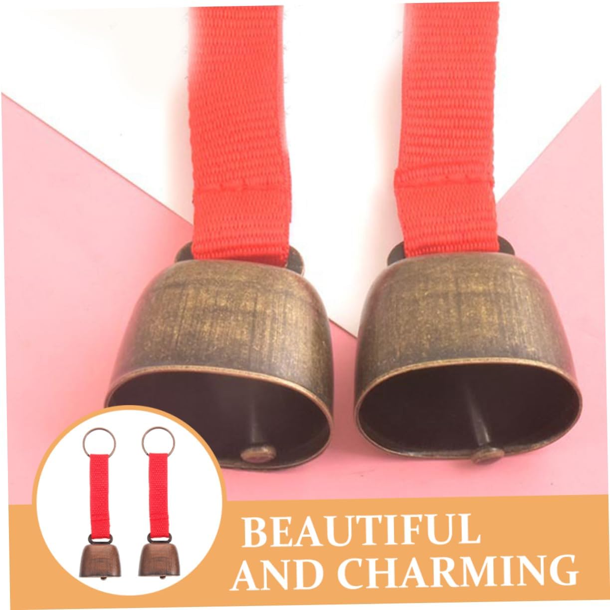 Metal bells:wide application, for camping and hiking, also can be as a prop decoration bells, handicraft bell ornaments, pet bells, cattle and sheep bells, wind chimes,loud bell