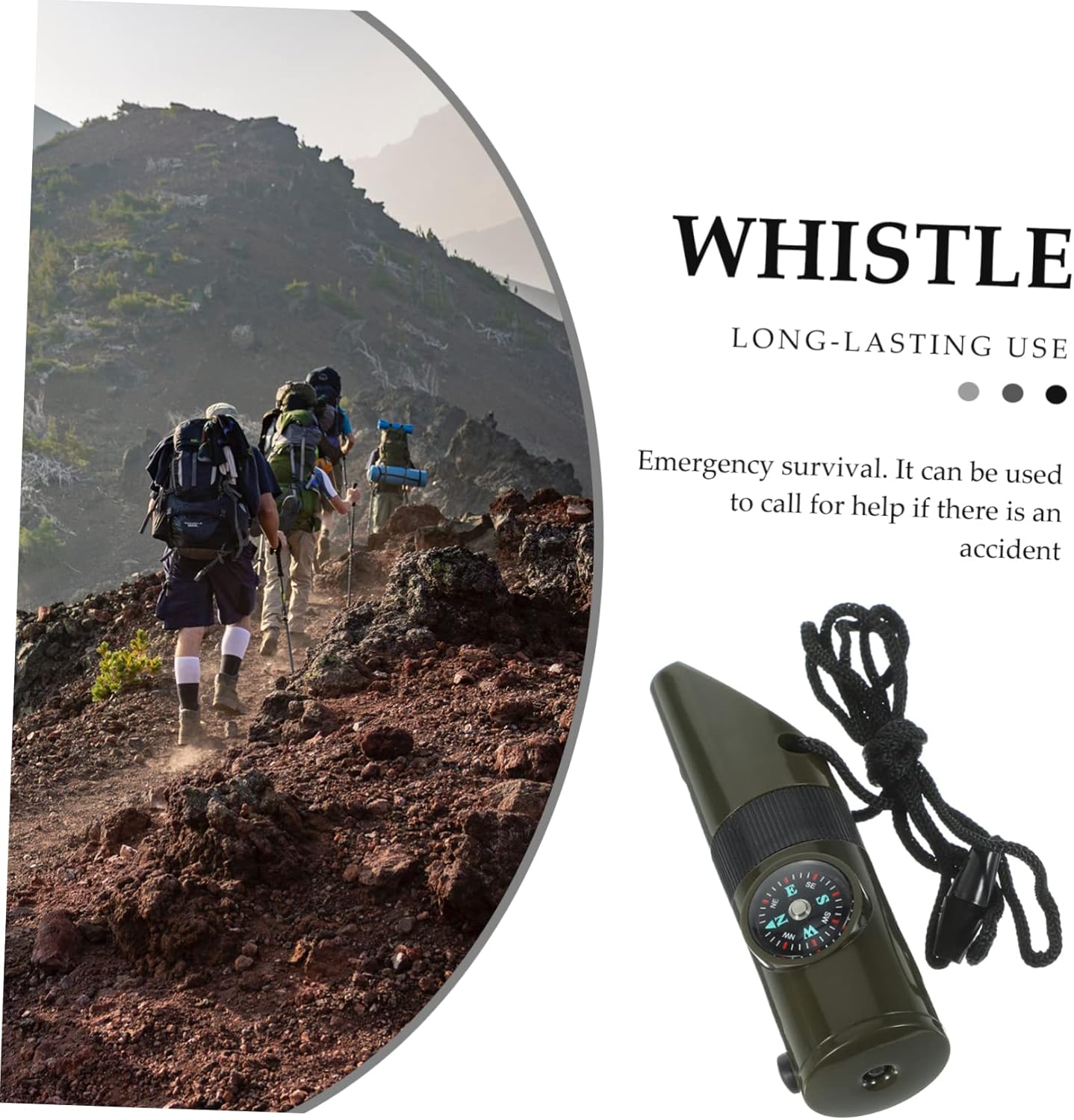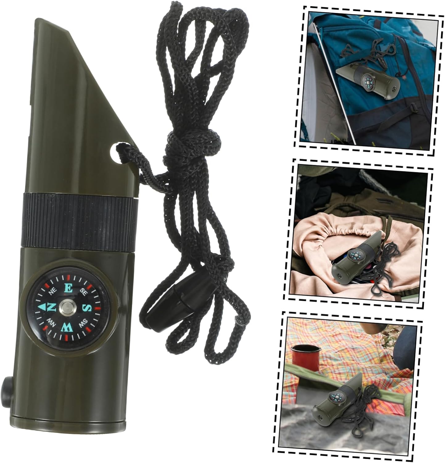 Emergency whistle:with seven-in-one design, it can be used as a whistle, a compass and a thermometer, etc,survival supplies