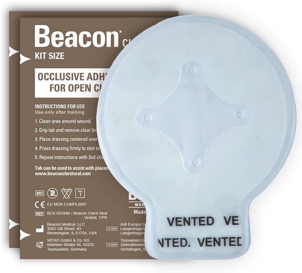 Trusted By Military, Police, Fire, Ems and First Responders: Beacon chest seal is an advanced occlusive wound dressing for open chest wounds. Our chest seals are suitable for extreme hot and cold temperatures and adhere to skin exposed to blood, sweat, hair, sand or water.