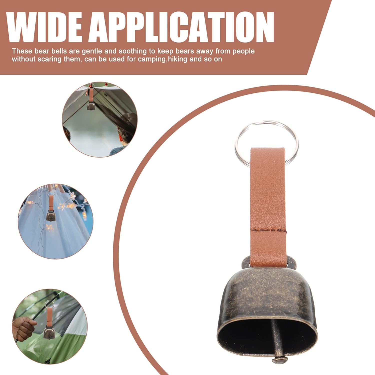 2Pcs Camping Bear Bell Camping Bell Pendant Retro Bell Pendant Outside Bell for Hiking, Biking, Fishing, Climbing