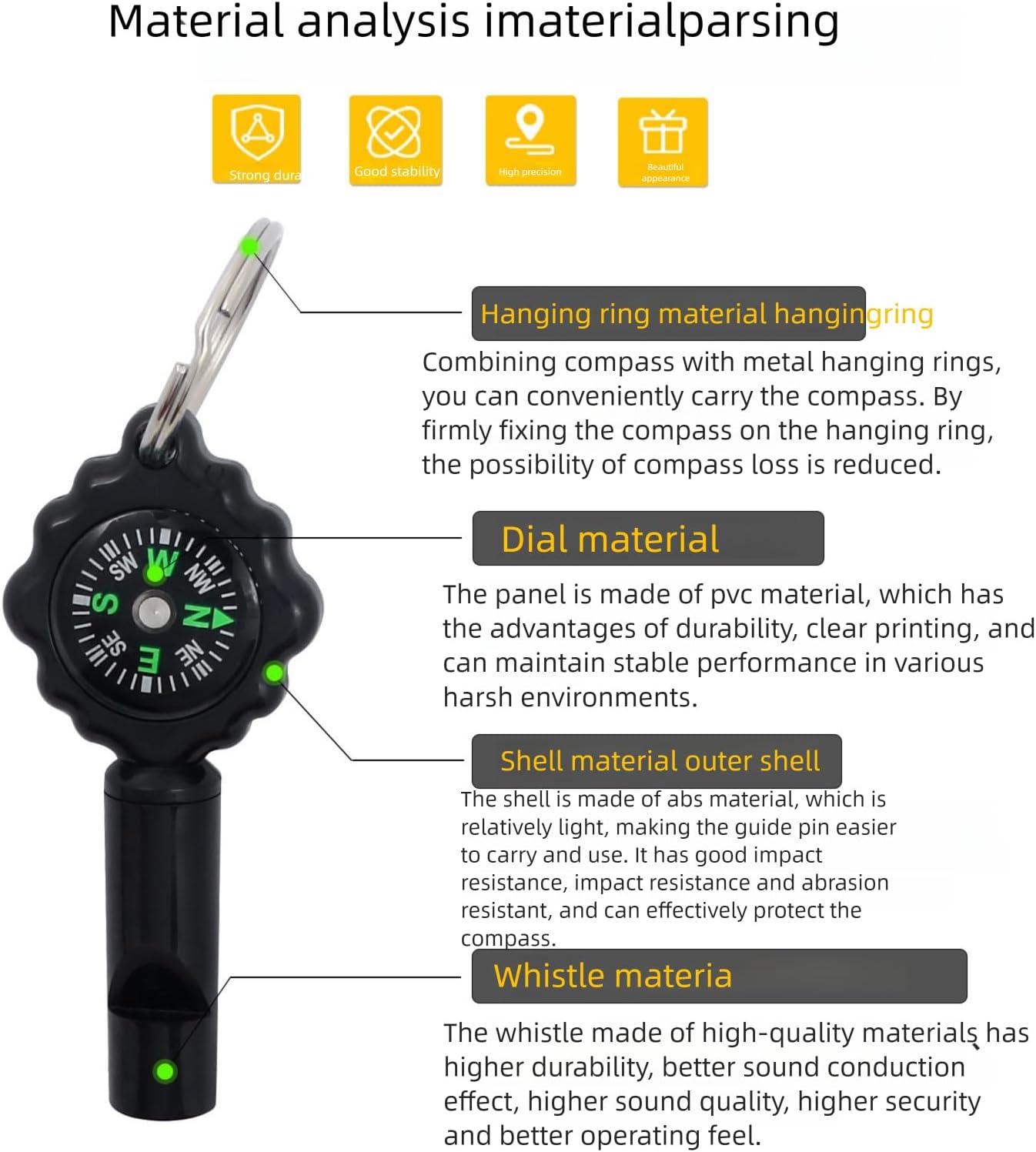 Durable ABS Outdoor Compass & Whistle Keychain – Perfect for camping, hiking, and survival. Features a high-precision compass and loud emergency whistle. A practical gift for adventurers!